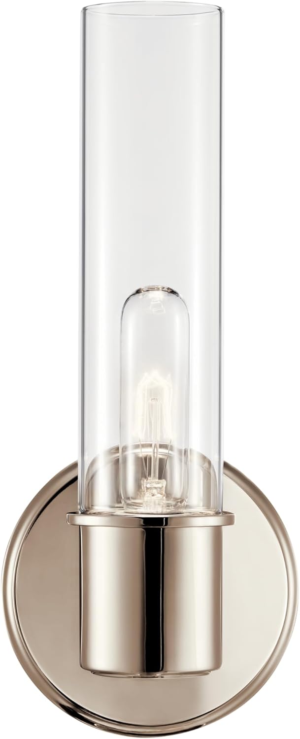 With its cylindrical clear glass shade, the Aviv wall sconce conveys a sleek style. A stunning polished nickel finish makes Aviv a versatile and timeless accent.Aviv's removeable clear glass lets the bulb's filament shine through for added distinction. Mount it glass facing up or down.