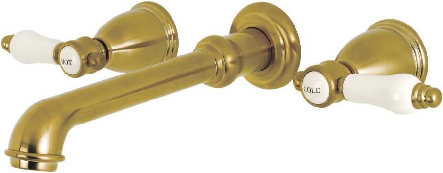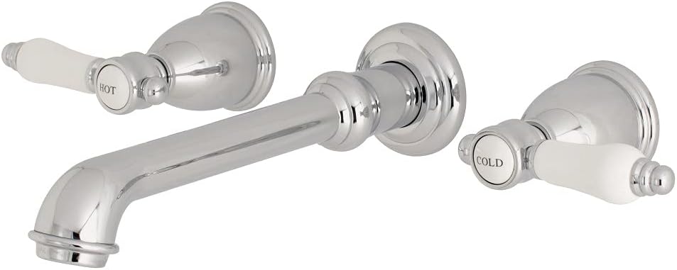 The graceful elegance of timeless design is beautifully merged between British flair and Victorian delicacy within this faucet's white porcelain levers. Attached to the wall behind your sink, the horizontal pop adds a stunning element to your bathroom design. Clean-up is also made a breeze as counter space is cleared up. The Bel-Air wall mount bathroom faucet and its featured sturdy brass construction and premium brushed nickel finish are guaranteed to glamorize your home's traditional ensemble for years to come. Varnish your bathroom with this state-of-the-art fixture.