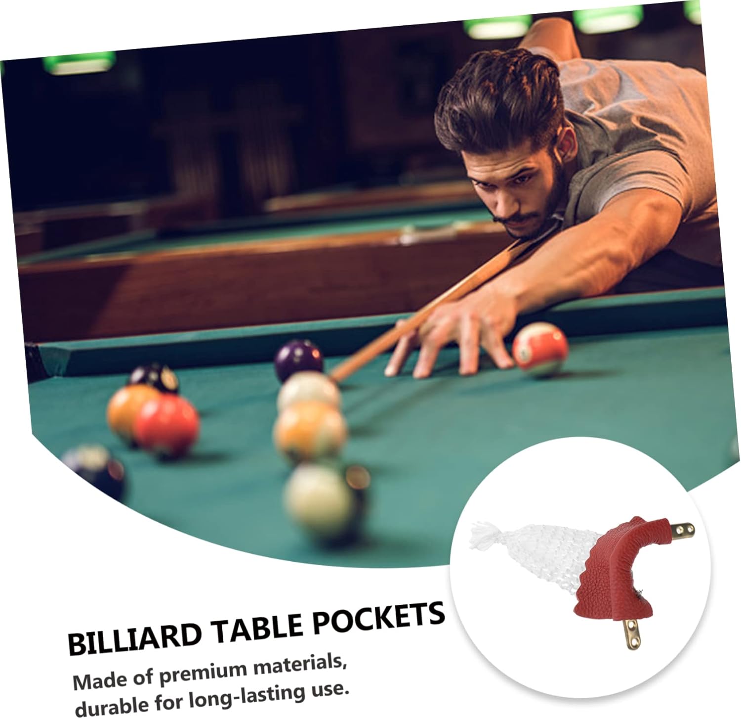 Package Include 6 x billiard pockets Characteristics - Material: Leather and cotton pool table pockets. - Size: .17.5x30.5cm/6.9x12inch billiard nets. - Leather cover, luxury looking, stylish billiard pockets. - Easy to install, each iron has 4 preset screw holes snooker pockets. - Made of , durable for long-lasting use billiard table pockets. - - A set of 6 billiard pockets including 4 corner net pockets and net pockets, fits standard snooker tables.Goods Descriptionsnooker pockets Have fun with this set of replacement pockets!.billiard table pockets This is a set of 6 pieces billiard pockets for standard pool table, 4 corner pockets and pockets.billiard nets The leather fringe makes the net pockets look stylish