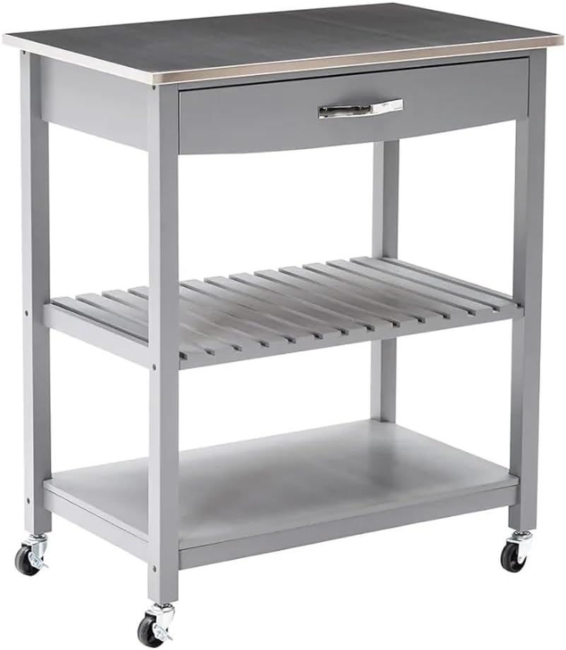 3 Shelf Trolley is made of iron and plastic material, sturdy and , not easy to break. for professional or personal use, for storing your in the kitchen, bedroom, laundry room, etc., and can also be used in beauty salons, spas, etc.3 shelves provide you with spacious storage space to meet your different needs.Versatile, this rolling storage trolley can be used anywhere in the home. for home,office, hotel, etc.Frame Material:Mdf,Stainless Steel,Medium Density Fiberboard.Product Dimensions:19"D x 30.5"W x 36"H.Shelf Type:Tiered ShelfFrame Material:Mdf,Stainless Steel,Medium Density FiberboardColor:GreyFurniture Finish:Engineered Wood, PineAssembly Required:YesItem Weight:34 poundsPackage: 1 pcs cart (Does not include other demo goods)1. Due to light and screen differences, the color may be slightly different from the picture.2. Due to manual measurement, please allow 1-3 cm difference.3. Thank you for your understanding.Easy Assembly: Comes with clear instructions and tools for hassle - free setup. With rounded edges on baskets and an ergonomic height, this microwave table ensures safe, comfortable use