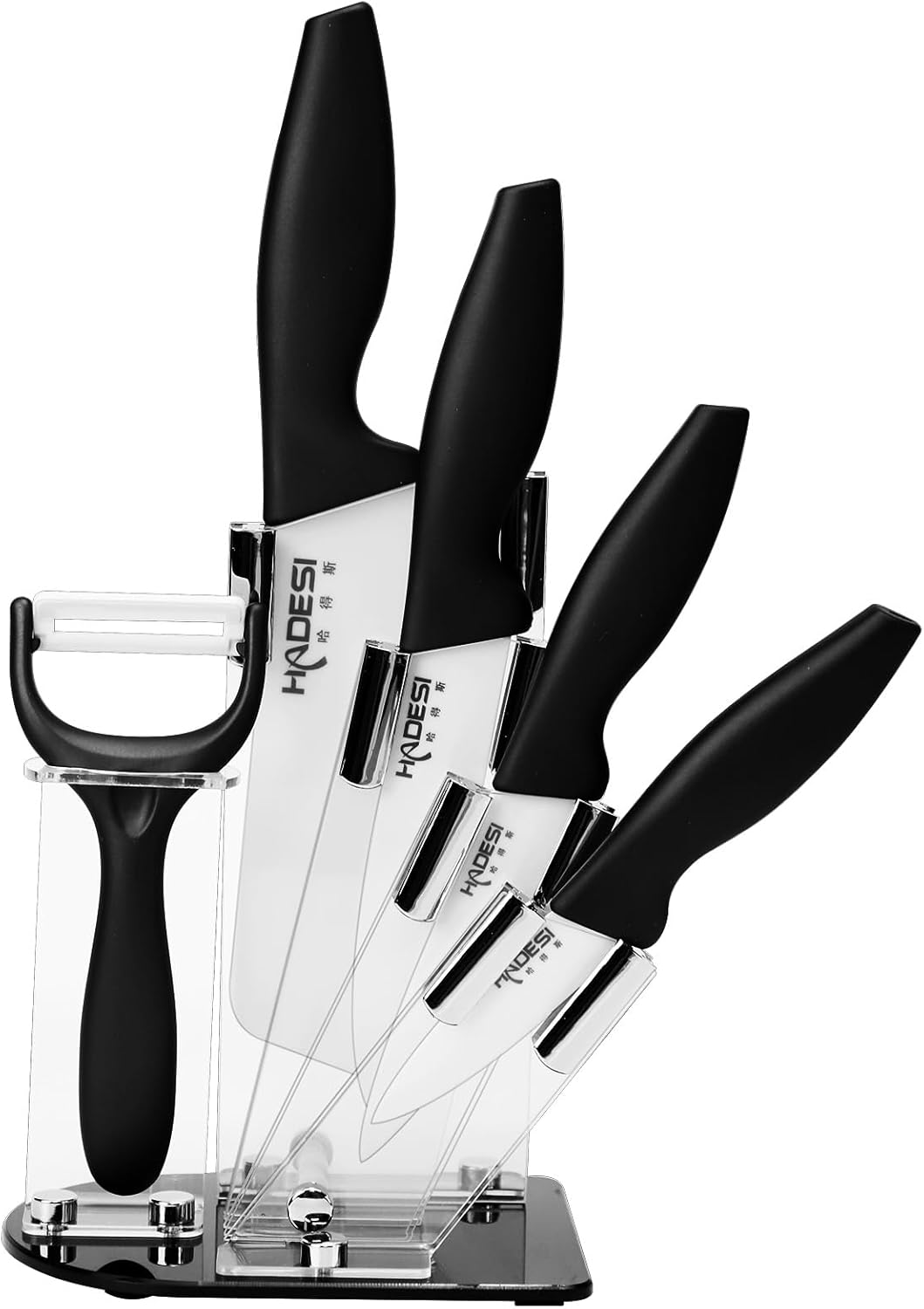 4-Piece Kitchen Knife Set:This versatile kitchen knife set includes a 7.8in kitchen knife, a 6.5in utility knife, a 5.2in fruit and vegetable knife and a paring knife. Easily perform everyday meal prep, slicing, and dicing tasks like a pro Ergonomic Handle:Ergonomically designed handle is rounded and curved, providing a balanced and comfortable grip, and prevents slipping when the hand is wet. Not only does it take into account the action of cutting vegetables, but it also achieves the curve and stability of the handle shape Long-Lasting Sharpness&Rust-Resistant:Ceramic kitchen knives are sharper than ordinary stainless steel knives, eliminating the tedious process of sharpening knives. Made of high-purity zirconium oxide, it's rust-resistant and preserves the original flavor of both acidic and alkaline foods.They are durable and can easily meet daily kitchen needs Lightweight&Easy to Use: The ceramic material makes the knife lighter and less prone to wrist fatigue, making it more suitable for women and the elderly Thoughtful Gift Choice::High-quality products, exquisite gift box packaging, is your ideal choice as an important festival, daily care gift