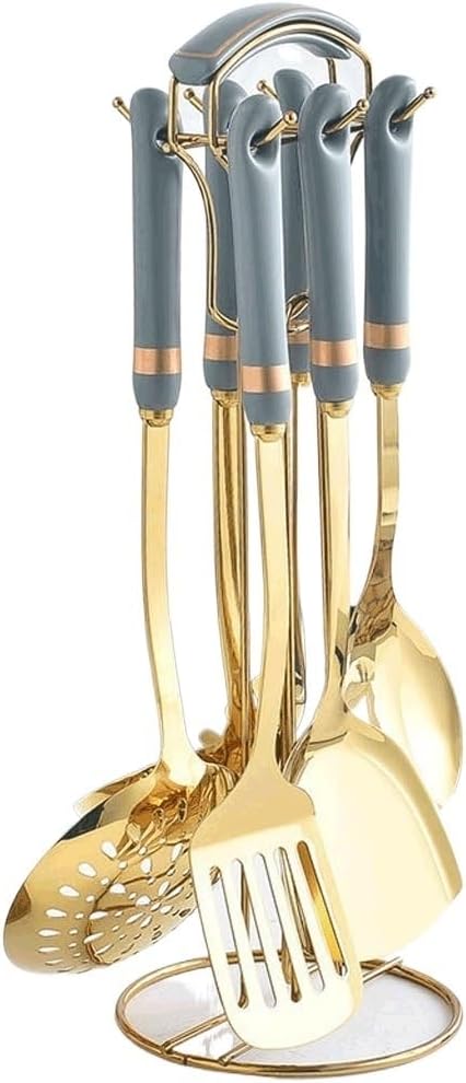 Thickened stainless steel material, thick, strong, , stainless steel, easy to clean.Ceramic handle, effectively separates heat, the golden circle design highlights the atmosphere and provides a comfortable feeling.Streamlined design, multifunctional combination, hanging hole design, convenient storage.Bright as armor, more beautiful, easy to clean, not easy to scale.Large capacity soup spoon, drip-proof design, long handle, suitable for soup masters with deep soup pot.: 7 Sets Kitchen UtensilsFeatures: crystal clear, easy to cleanMaterial: stainless steel + ceramic handleNumber of parts: 7The set includes: 7 kitchen utensils * 1 (excluding other displays)Reminder:1. The product size is measured manually for reference only. The actual product prevails.2. There may be slight color differences visually due to differences in screen display. Please refer to the product receivedBest slotted spoon for deep frying chickenStainless steel slotted spoon with wooden handle