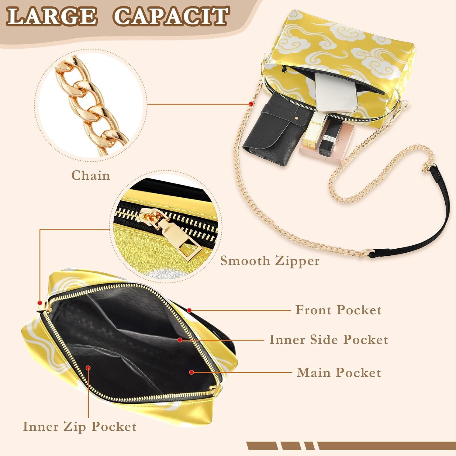 Effortless Style, Everywhere You Go!You'll love this women's PU leather crossbody handbag – your perfect companion for workdays, city strolls, beach getaways, and spontaneous adventures. Crafted from soft, water-resistant faux leather, it laughs off spills and light rain, while being a breeze to wipe clean. No more stressing over scuffs or weather surprises!Smart & Secure Organization:Zip open the main compartment to find a large slip pocket for your phone or passport, plus a handy inner zippered for cash and cards. Perfectly sized at 24.5cm x 16cm x 8.5cm (9.6" x 6.3" x 3.3"), it holds all your daily essentials – keys, wallet, phone, makeup, sunglasses – without feeling bulky. Finally, no more digging for lost keys!Hands-Free Comfort You’ll Adore:The adjustable strap lets you find your perfect fit. Wear it crossbody for secure, shoulder-friendly comfort while shopping, sightseeing, or chasing waves. Ditch the heavy tote and feel the freedom!Built to Last & Look Great: metal hardware adds strength and a touch of shine. The quality faux leather looks luxe without the high-maintenance, staying chic from office meetings to weekend markets.