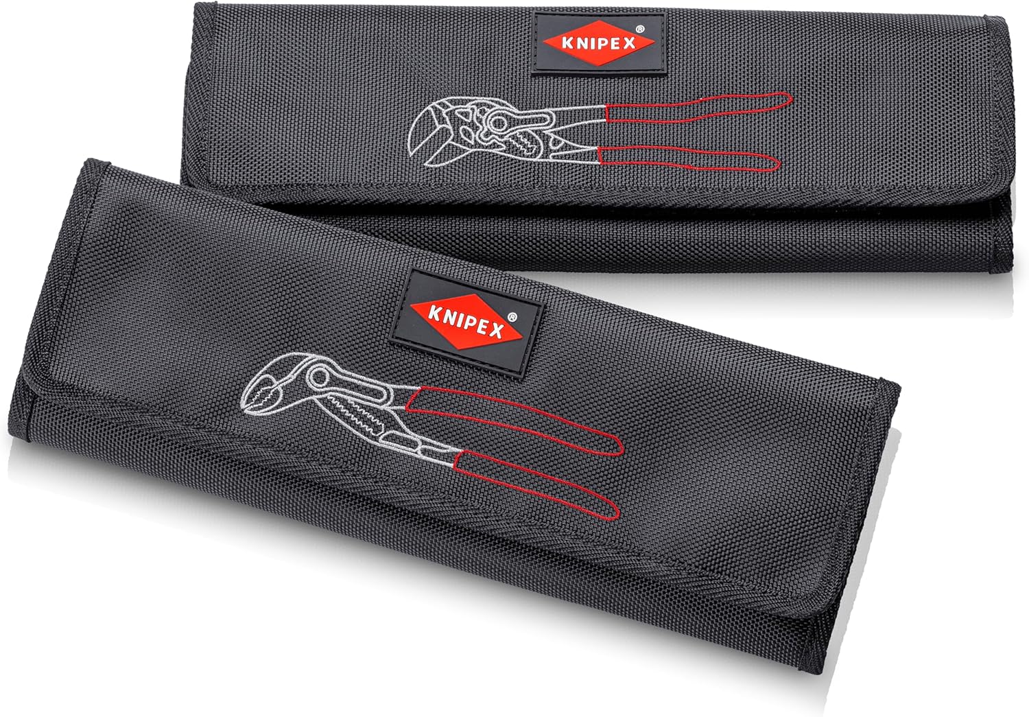 The Pliers Wrench is an innovative tool that combines the functions of pliers and wrenches in one tool. With its high leverage design, the Pliers Wrench is ideal for various tasks like gripping, turning, pressing, and bending. Whether you need to tighten or loosen nuts and bolts or require precise gripping, the Pliers Wrench is the ideal choice. This three-piece Pliers Wrench set comes with a tool roll to keep your pliers clean and organized. Replaces a full set of inch and metric open end wrenches up to 2 1/2". Smooth jaws for damage free installation of plated fittings - working directly on chrome. Adjustable tightening tool. Excellent for gripping, holding, pressing and bending applications. Zero backlash jaw surface pressure prevents damage to edges of sensitive components. Multiple adjustment positions at the touch of a button directly on the workpiece. Laser-etched scale allows the wrench opening to be set before gripping onto workpiece. Laser marked adjustment scale to set the opening width before use - metric and inch markings. Parallel jaws allow infinitely variable gripping of all widths to the specified maximum size. Reliable catching of the hinge bolt: no unintentional shifting. The action of the jaws allows bolted connections to be tightened and released quickly using the ratchet principle. Lever transmission greater than 10-1 for strong gripping power. The KNIPEX branded tool roll is made of hard-wearing polyester fabric with hook and loop closure. Set includes three (3) Pliers Wrench: 86 03 150 (6"), 86 03 250 (10") and 86 03 300 (12").