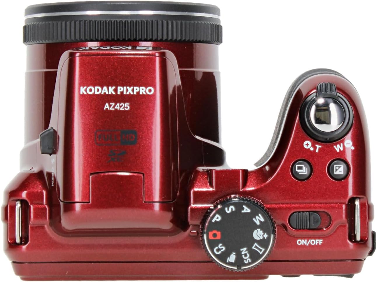 The Kodak PIXPRO AZ425 Digital Camera (Red) combines versatility and power, making it an ideal choice for travelers, family photographers, and creative storytellers. With a 20MP CCD sensor, it captures stunningly detailed stills and HD 720p video. Its wide ISO range of 80-3200 ensures impressive performance in various lighting conditions, from bright outdoor scenes to dim indoor settings. Equipped with a 42x optical zoom lens, this camera covers an expansive 24-1008mm focal length range, enabling wide-angle and super-telephoto shooting. Whether capturing vast landscapes or distant wildlife, the AZ425 excels at delivering sharp, clear images. Optical image stabilization minimizes camera shake, ensuring steady results even during handheld shooting or at extended zoom ranges. The 3.0" LCD screen allows for effortless framing and review of shots, while intelligent detection modes, including Face, Smile, Blink, and Pet, optimize settings for memorable portraits and pet photos. A built-in pop-up flash provides additional light for low-light scenarios, and the 180° panorama mode captures stunning wide-angle scenes seamlessly. Designed for convenience and creativity, the Kodak PIXPRO AZ425 offers a blend of powerful features and easy-to-use controls. Whether you’re documenting everyday moments or exploring new destinations, this camera is your reliable companion for capturing life’s unforgettable experiences. Bundle Includes: Kodak PIXPRO AZ425 Digital Camera (Red)Cleaning Kit64GB Memory CardHand StrapFlexible Vlogging TripodMemory Card WalletUSB Card Reader, SD/microSDCamera BagCorel Photo, Video, & Art Suite DeluxeMicro HDMI Cable To HDMI 6 Ft