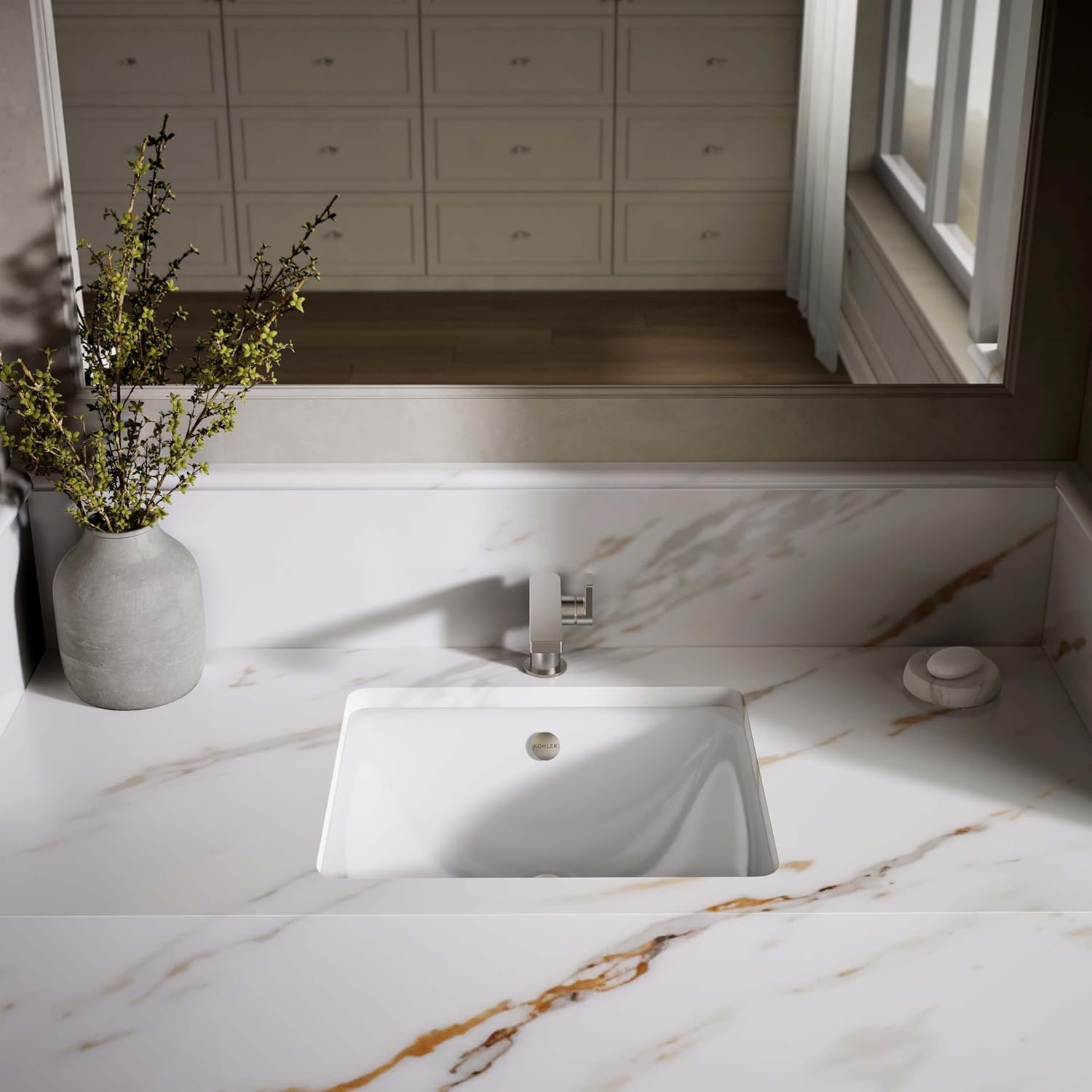 Product Description With its gently curved, organic shape, the KOHLER Iron Plains sink combines distinctive style with the extreme durability, strength, and vintage soul of KOHLER enameled cast iron. Two installation options - drop-in or under-mount - make this 18-1/2" rectangular drop-in/undermount bathroom sink a flexible choice for a wide range of bathroom configurations. From the Manufacturer With its gently curved, organic shape, the Iron Plains sink combines distinctive style with the extreme durability, strength, and vintage soul of KOHLER enameled cast iron. Two installation options-drop-in or under-mount-make this sink a flexible choice for a wide range of bathroom configurations.