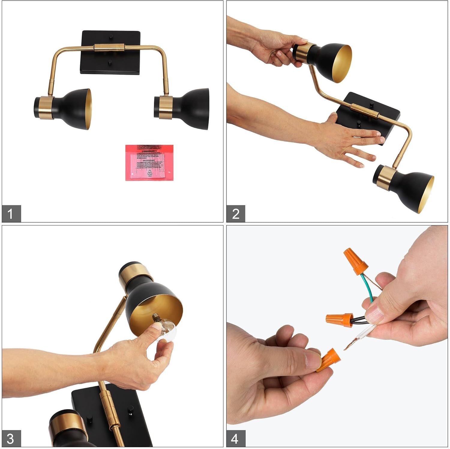Stylish Adjustable Sconce: Our 2-light wall sconce features a flexible design with three adjustable joints for directing light where it's needed. Its chic matte black and electroplated brass gold finish, along with metal cone shades, provide a modern industrial look that enhances the decor of any bedroom, living room, or bathroom.