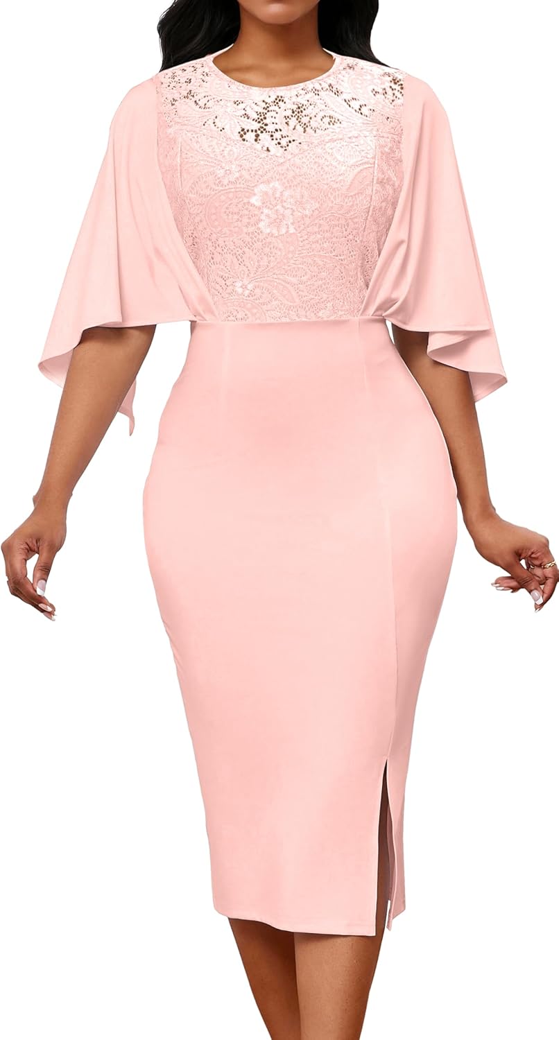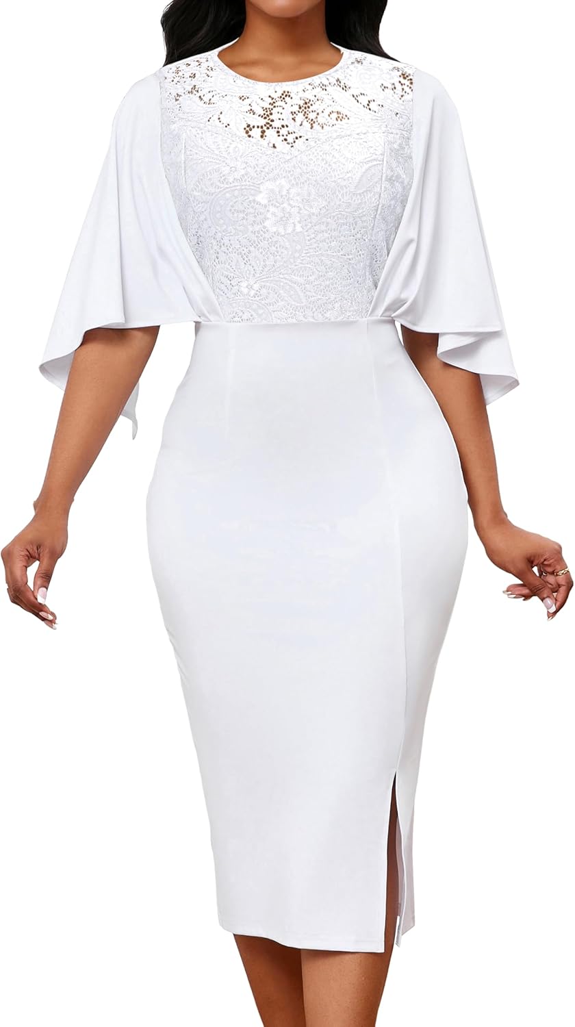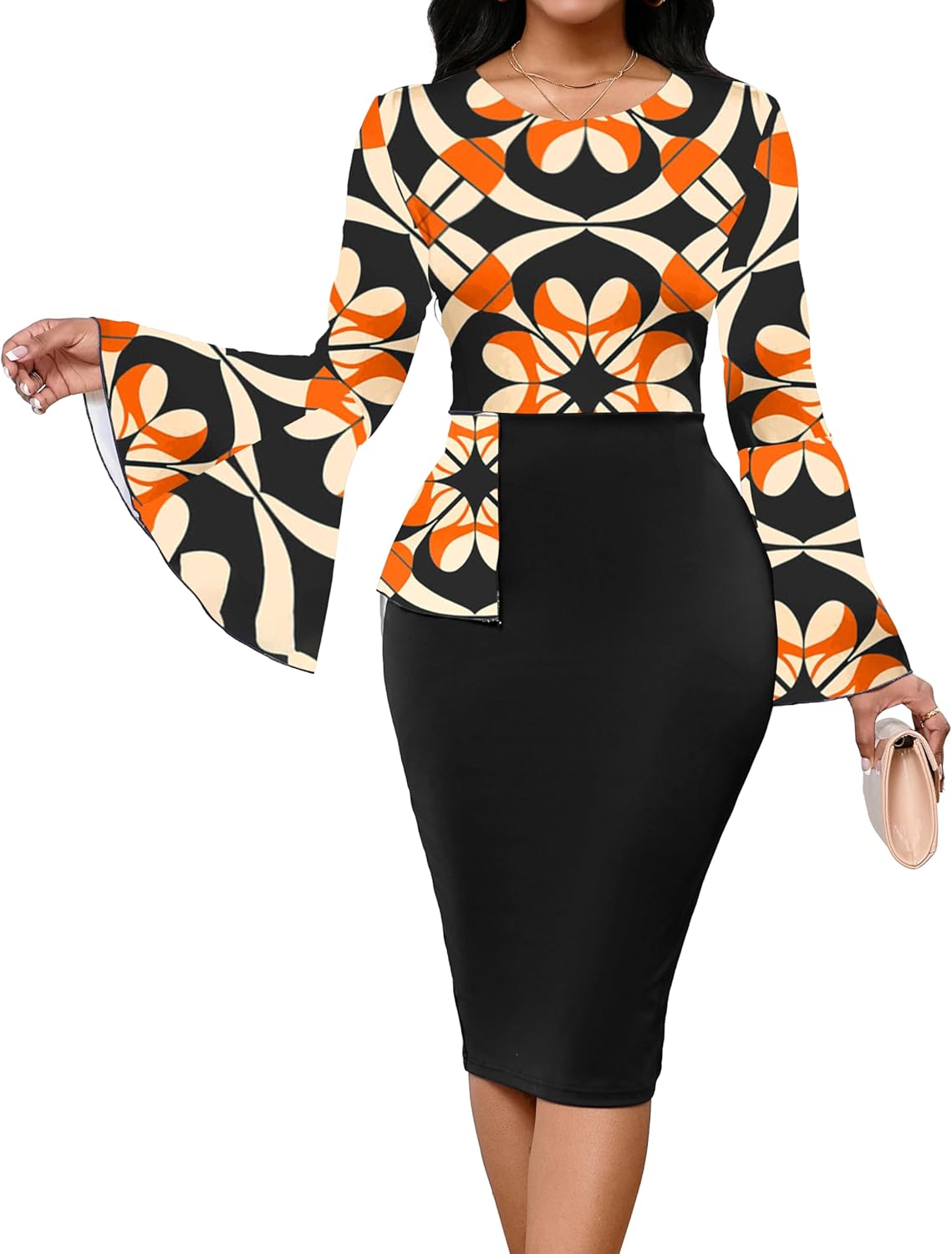 Dresses for Women Elegant Long Sleeves Ruffles Pencil Knee Length Split Business Dress with Belt Zipper