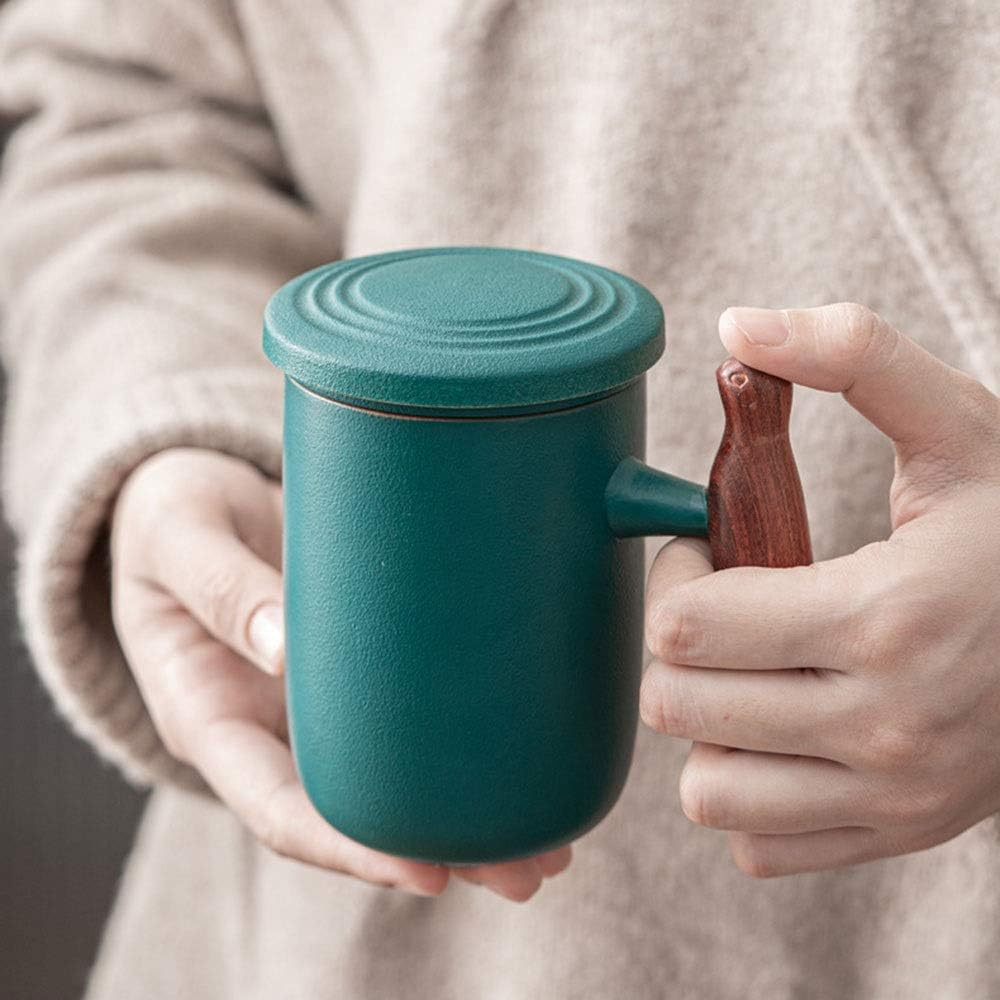 Our Tea cup with infuser is a high-grade,stylish and functional mug for tea lover,simplify your tea brewing and it will bring you a freshly brewed cup of tea at anytime in office or at home. You can get: A cute tea mug in big volume,allows you to enjoy your drinking in one time. A deep tea filter,allows plenty of space for tea to expand,and the holes of filter is pretty small,suitable for most bulk loose tea and avoid the leaves to stuck. A tea mug lid,helps your tea to keep warm when mug covered,also the lid works as filter holder or mug coaster. Product Size:Total length: 4.92in, cover width: 3.34in, height: 4.92in Capacity:365ML