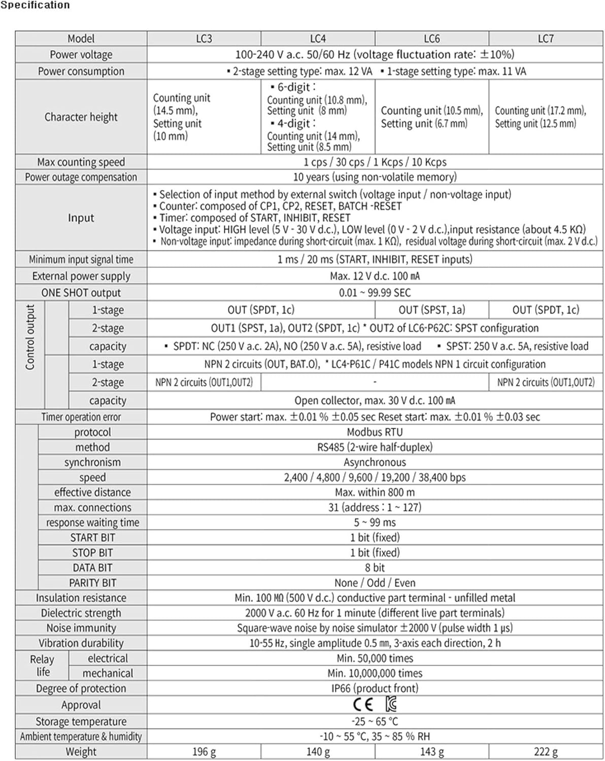 *LCD Counter Timer with Expanded Prescale range - Wide viewing angle LCD and white backlight - Pre-scale setting range expanded (from 0.00001 to 999999) - Modbus communication function (RS485) - Offset function for counter and timer