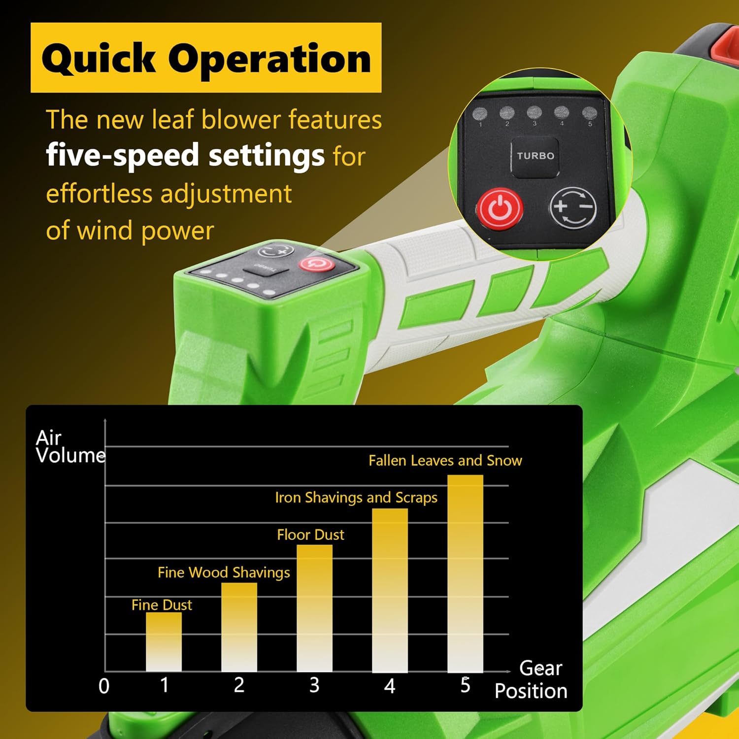 Superior Air Blowing Performance: Our vane blowers are designed with advanced turbine technology and axial fans to maximize airflow output. Delivering an impressive air volume of up to 650CFM through a conical nozzle, the Leaf Blower Cordless is highly effective at clearing large piles of leaves and debris.