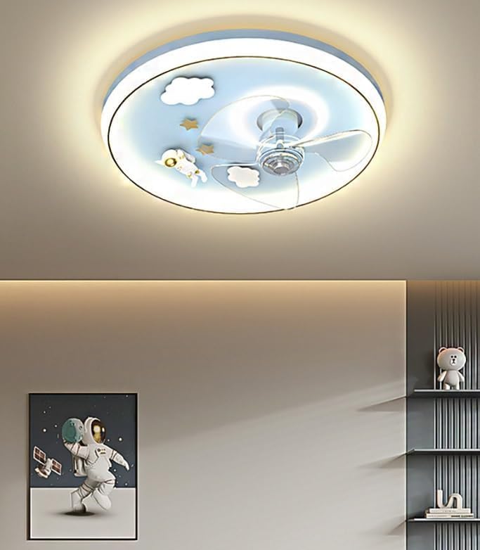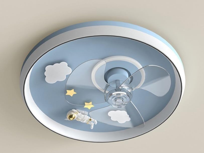 Each product is strictly tested to ensure superior quality.Our goal is to provide our customers with efficient, convenient and high-quality products.Thank you for visiting our store and wish you a happy shopping!Type: fan lightStyle: modern cartoonShape: roundSize: 48*13 cmPower: 53 wattsMaterial: iron + acrylicProcess: color baking + sanding + cuttingVoltage: 110V-240VColor: blue/pinkColor temperature: 3000K-6000KBrightness: 10%-100Dimmable YesFunction: Dimmable Adjust the light color/brightness, change the light color (white/neutral/warm).Applicable places Living room, dining room, bedroom, study, club, loft, coffee shop, bar, office, corridor, bathroom.Control: remote control / wall mounted (wall mounted can only adjust the color temperature)Function: Lighting + 3 wind speedsAll mounting hardware required is included in the package, you just no need to connect the wire, Installation is very convenient.
