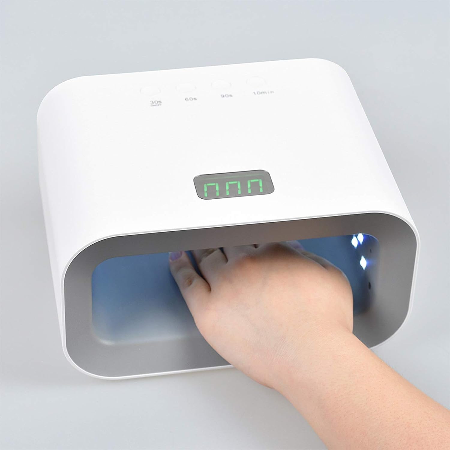 Specifications:: 90W High Power Nail Lamp Light Beads Qty: 30pcs light beads 365+405nm (Nail Gel Drying Lamp)30pcs red light beads 630nm (Skin Care Whitening) Power: 90W (max)Size: 213*120*100mmMaterial: PC, ABSColor: WhiteDigital Time Display Features:New upgrade designs, smart infrared sensor, save time and efforts.30 high-power lamp beads are distributed around, quick drying all gels in seconds.60Pcs light beads, half for nail drying, the others for skin whithning.Smart over-temperature protection, makes you comfortable during the curing time. New Whitening mode. Daily 10 min can improve your skin color. New shape design, more delicate and convenient than traditional lamp.Our Smart Sensor technology automatically turns on the lamp when you insert your hand and turns it off when you take it out Our LED Lamp for Gel Nails is compatible with all gel nail polish types