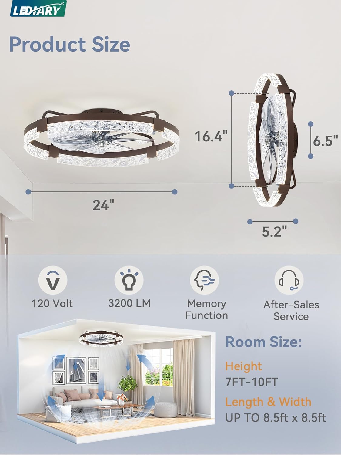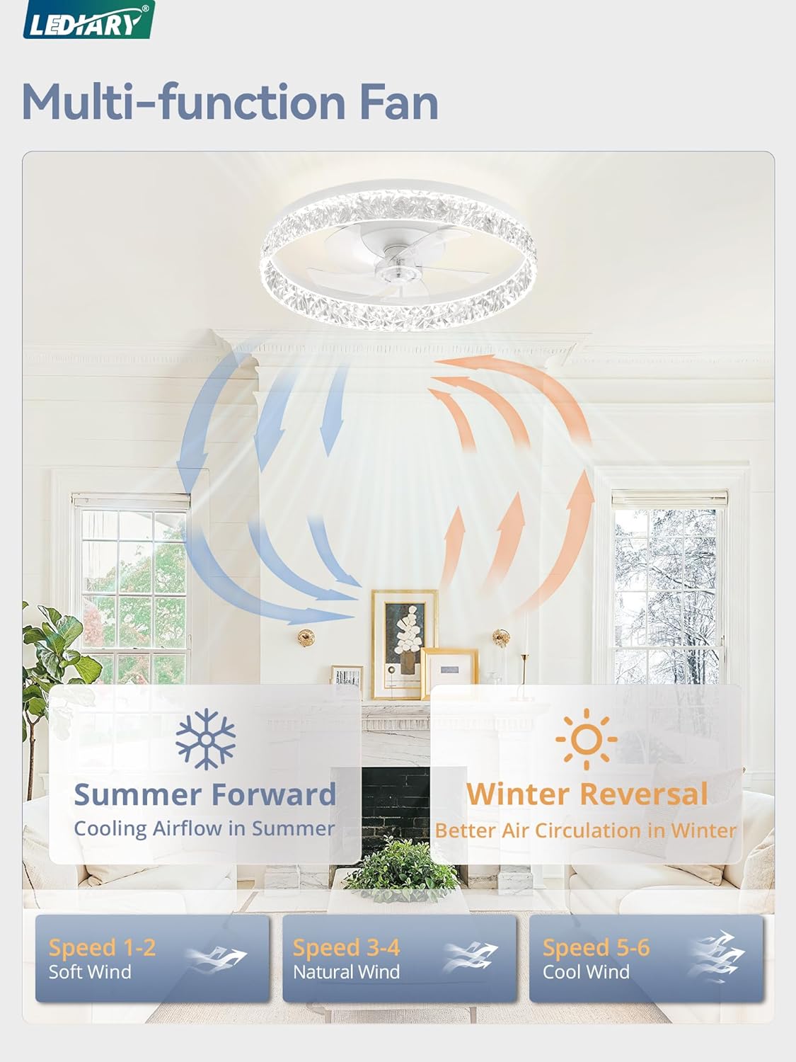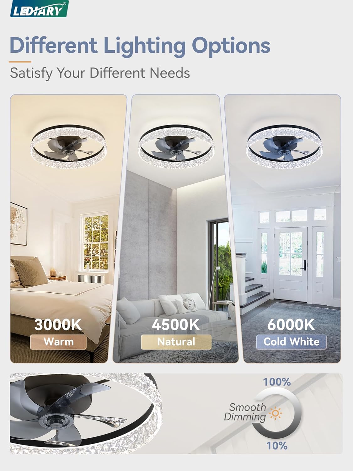 | Special Features | 6 Speeds, Adjustable Color Temperature, Dimmable, Reversible DC Motor, Timer |