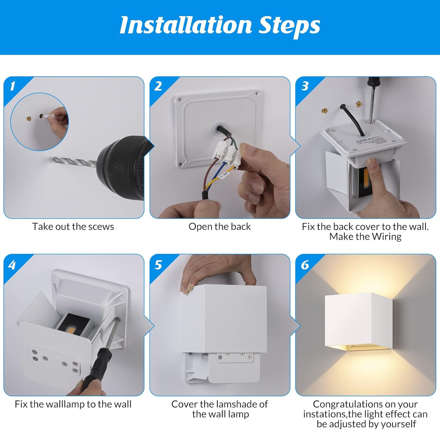 Wall Lamp with Adjustable Angle : LED outdoor wall llights have a personalized style, up and down adjustable light angle, can achieve a variety of lighting effects, so that the light is more artistic.(Not dimmable)