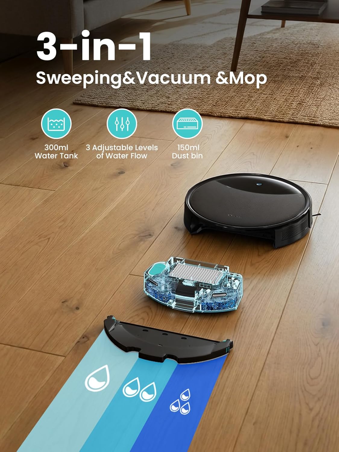 | Included Components | 1*Disposable mop, 2*Dust bag, 2*Dust box filter, 2*Side Brush, robot vacuum |