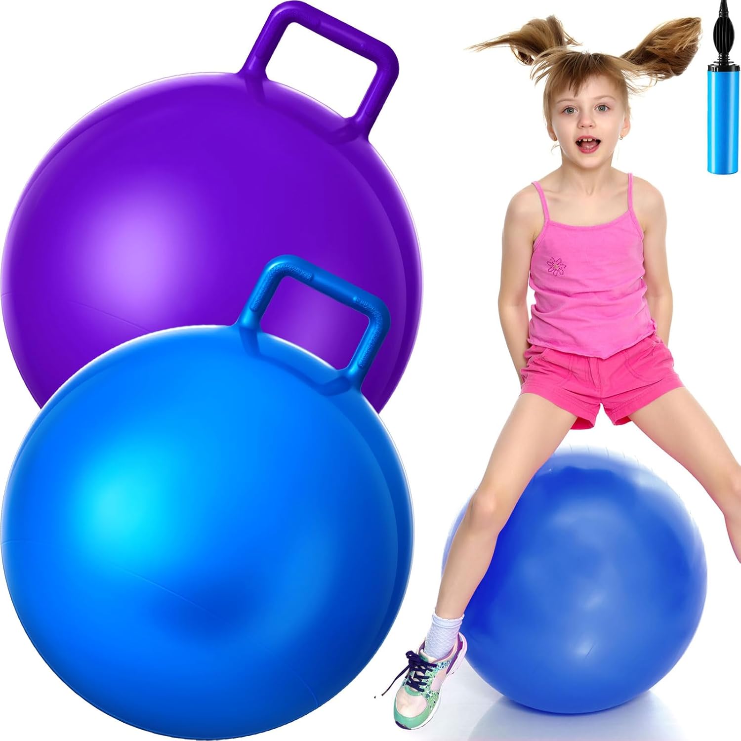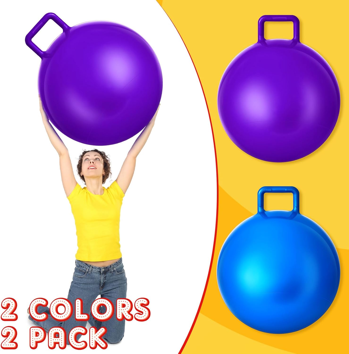 Features: There is a handle above the bouncing ball that can be grasped, this design ensures that the balls are easy to hold and less likely to slip from your grasp, providing a nice play experience. These bouncing balls are ideal for indoor, outdoor, birthday parties, family, and sports games, they can also be sent as a gift to people after the game, they will be very happy. Specifications: Material: PVC Color: blue, purple Size: about 31 inches/ 80 cm Package includes: 2 x Hopper balls 1 x Air pump Notes: Manual measurement, please allow slight errors on size. The color may exist a slight difference due to different screen displays.