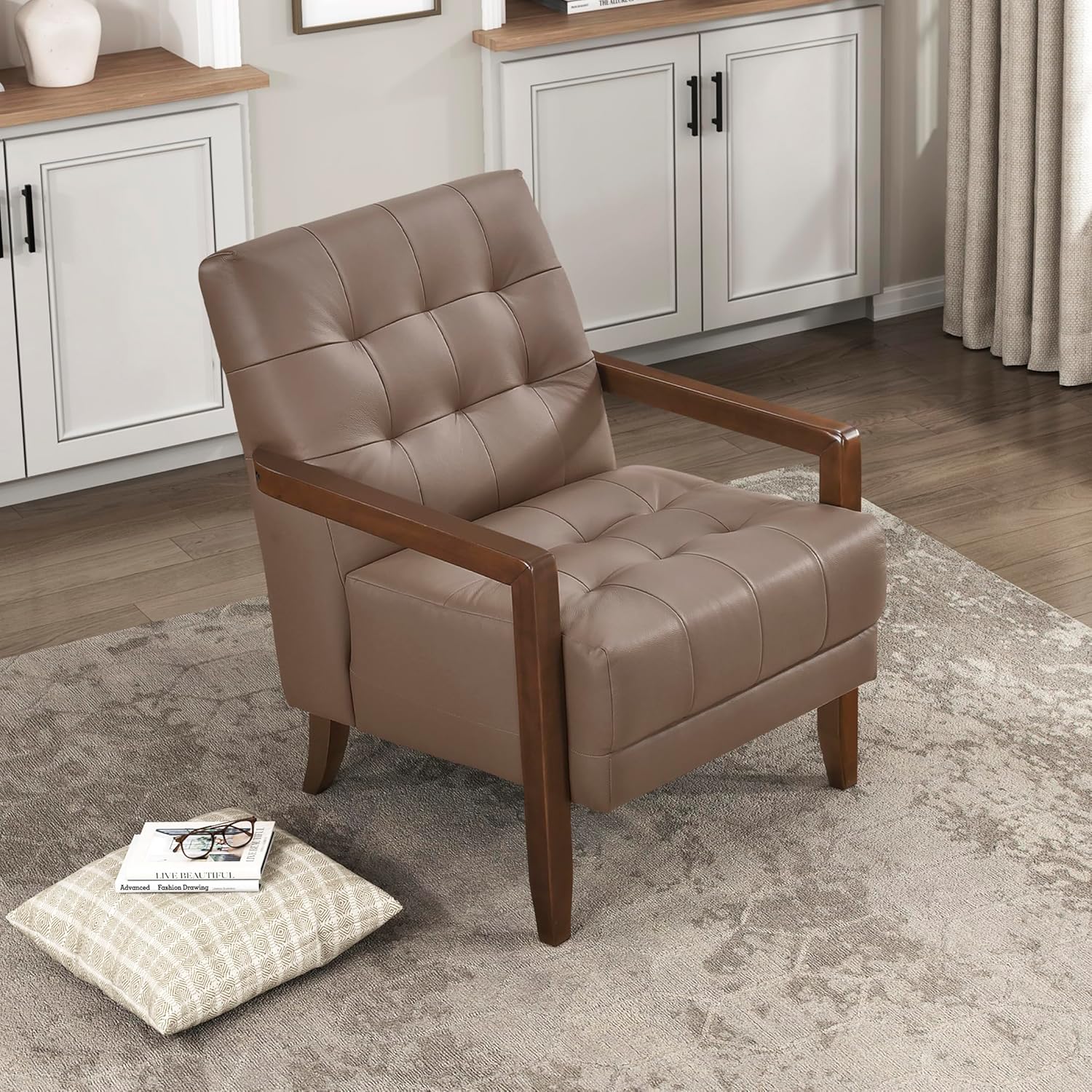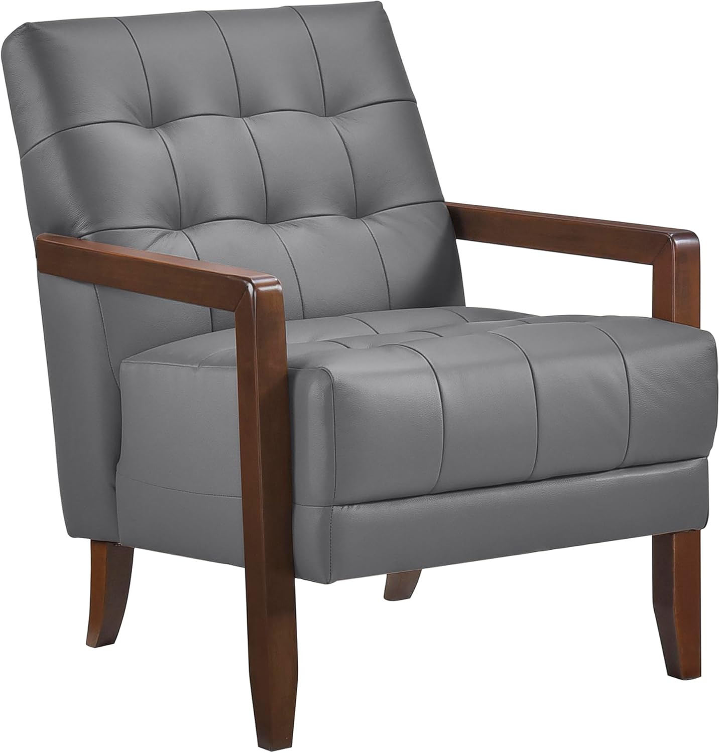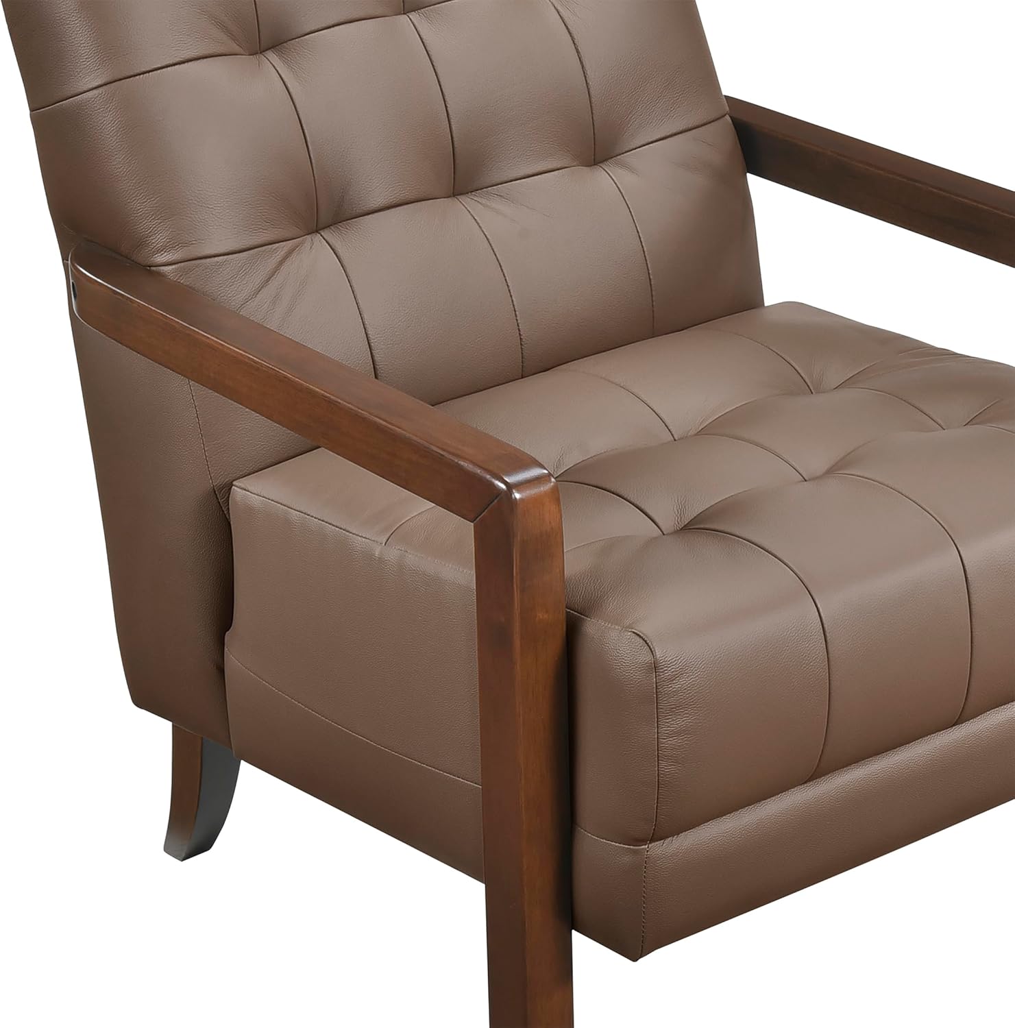 Model Name Lexicon Modern Accent Chair, Luxury Genuine Leather Living Room Chair With Tufted Cushions, Solid Wood Frame