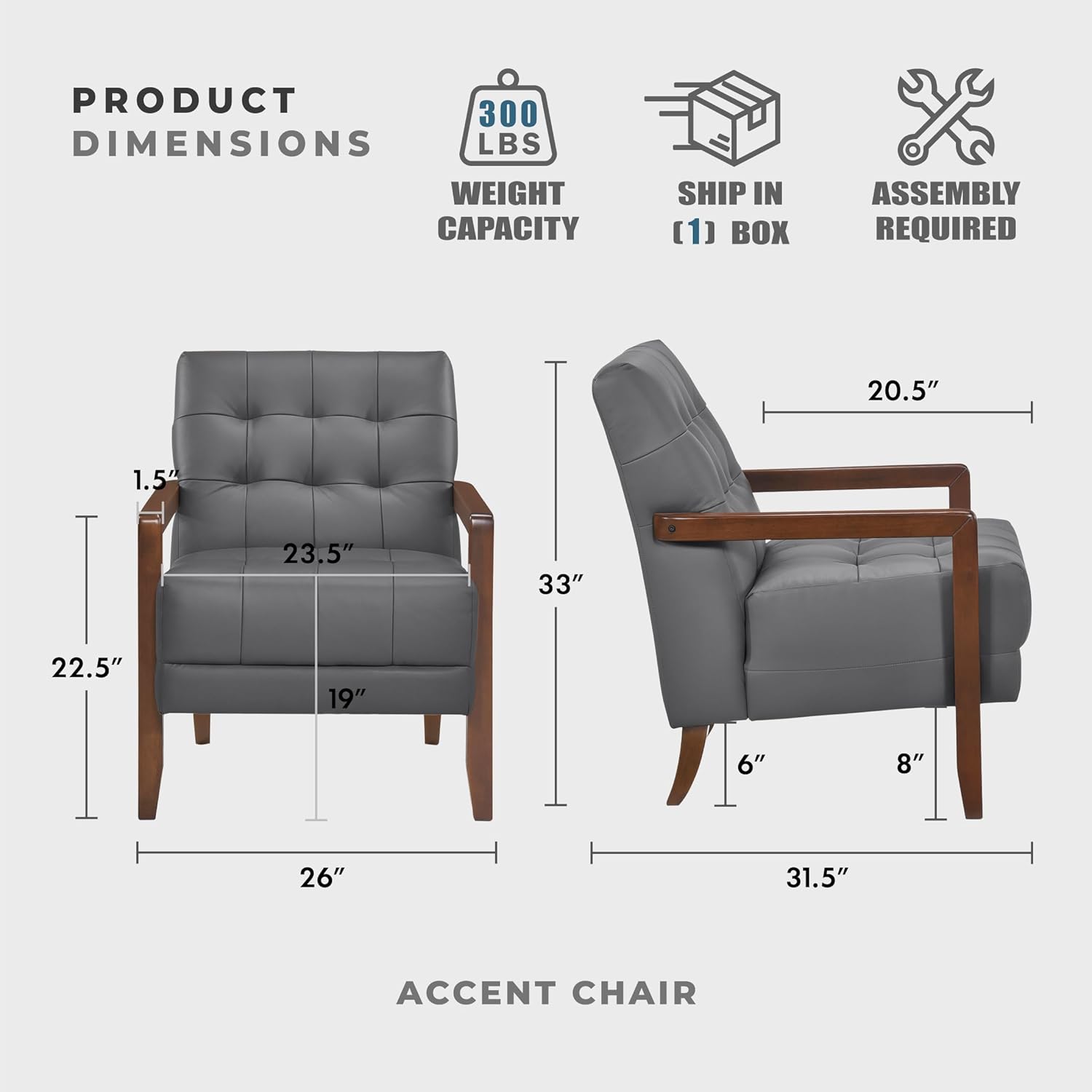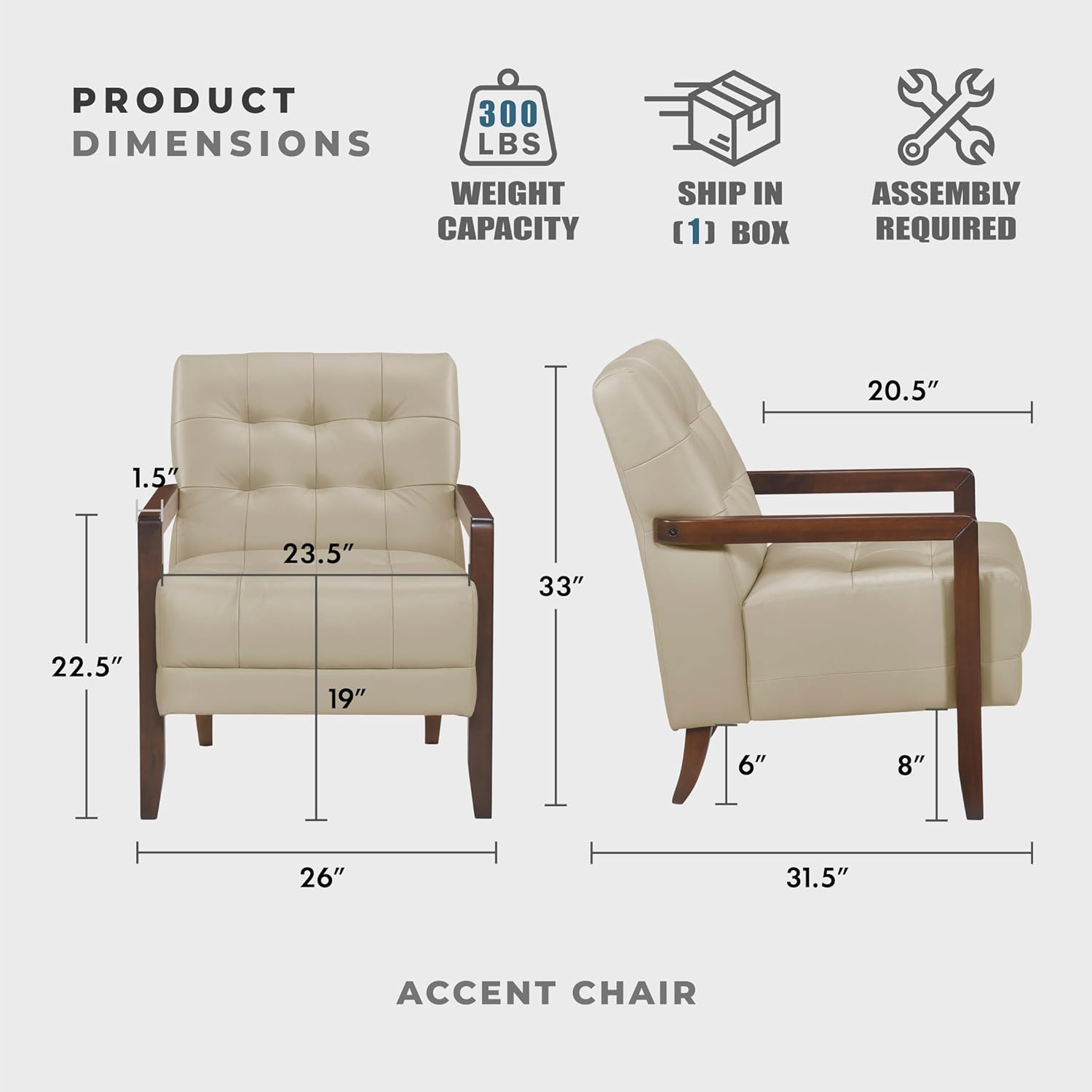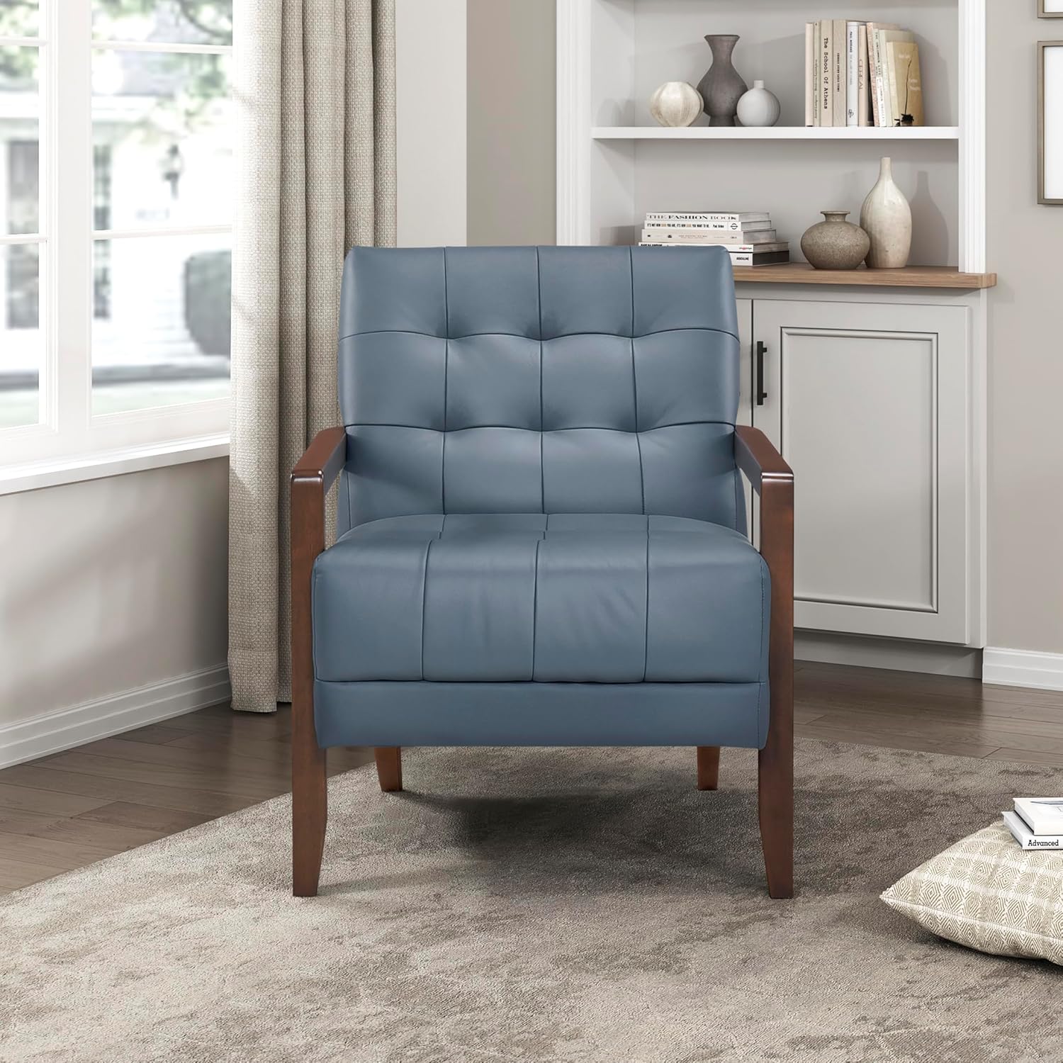Model Name Lexicon Modern Accent Chair, Luxury Genuine Leather Living Room Chair With Tufted Cushions, Solid Wood Frame