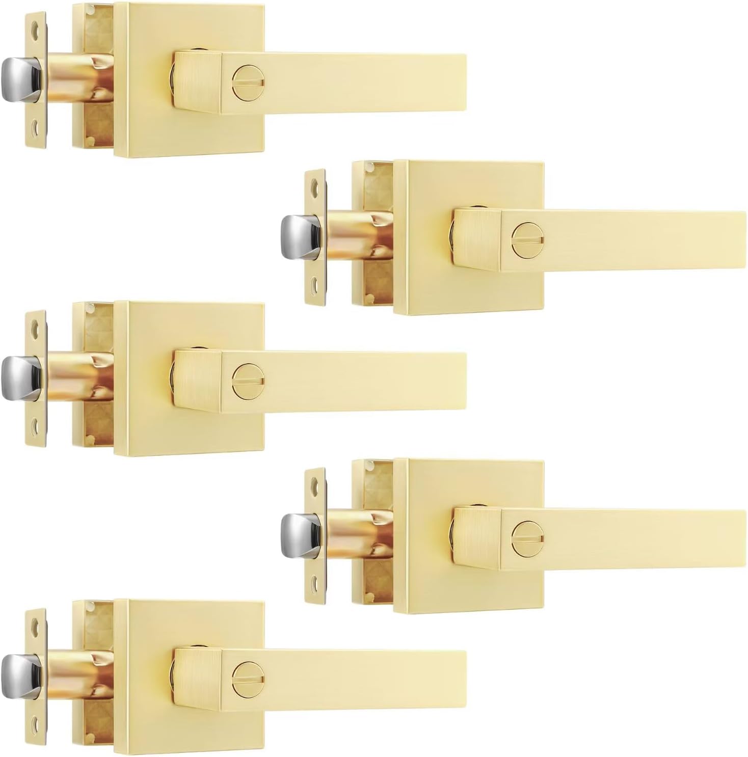 Leydebong 6 Pack Interior Door Handles, Gold Passage Door Knobs, Non-Locking Door Levers, Zinc Alloy Interior Door Knobs for Hallway Closet