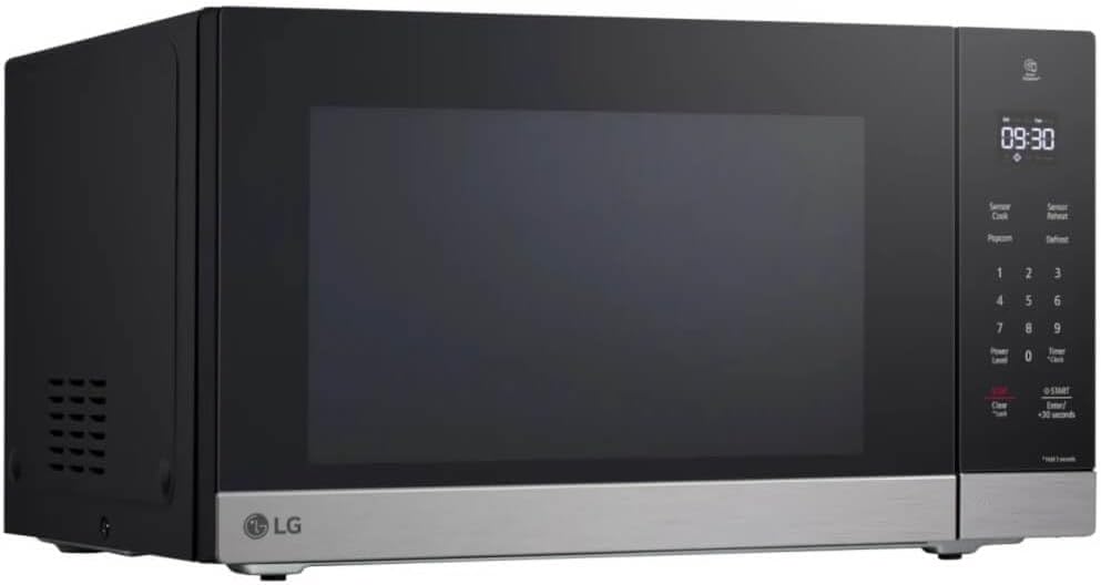 Elevate your kitchen with the LG 1.5 cu. ft. NeoChef Countertop Microwave featuring Smart Inverter technology for precise cooking control. This stainless steel microwave delivers 1200 watts of power with 10 adjustable levels to handle everything from gentle warming to rapid cooking. The innovative sensor cooking function offers 7 preset options including Bacon, Fresh Vegetable, and Rice, while the 5 sensor reheat settings ensure your leftovers taste freshly made. The spacious 1.5 cu. ft. interior accommodates larger dishes, complemented by a generous 14.2" turntable. Enjoy convenient features like EasyClean interior for simple maintenance, a child lock for safety, and a sleek glass touch control panel. The divided door design and LED lighting add modern functionality to this compact yet powerful appliance that measures approximately 21 7/16" W x 12 1/8" H x 16 3/16" D.