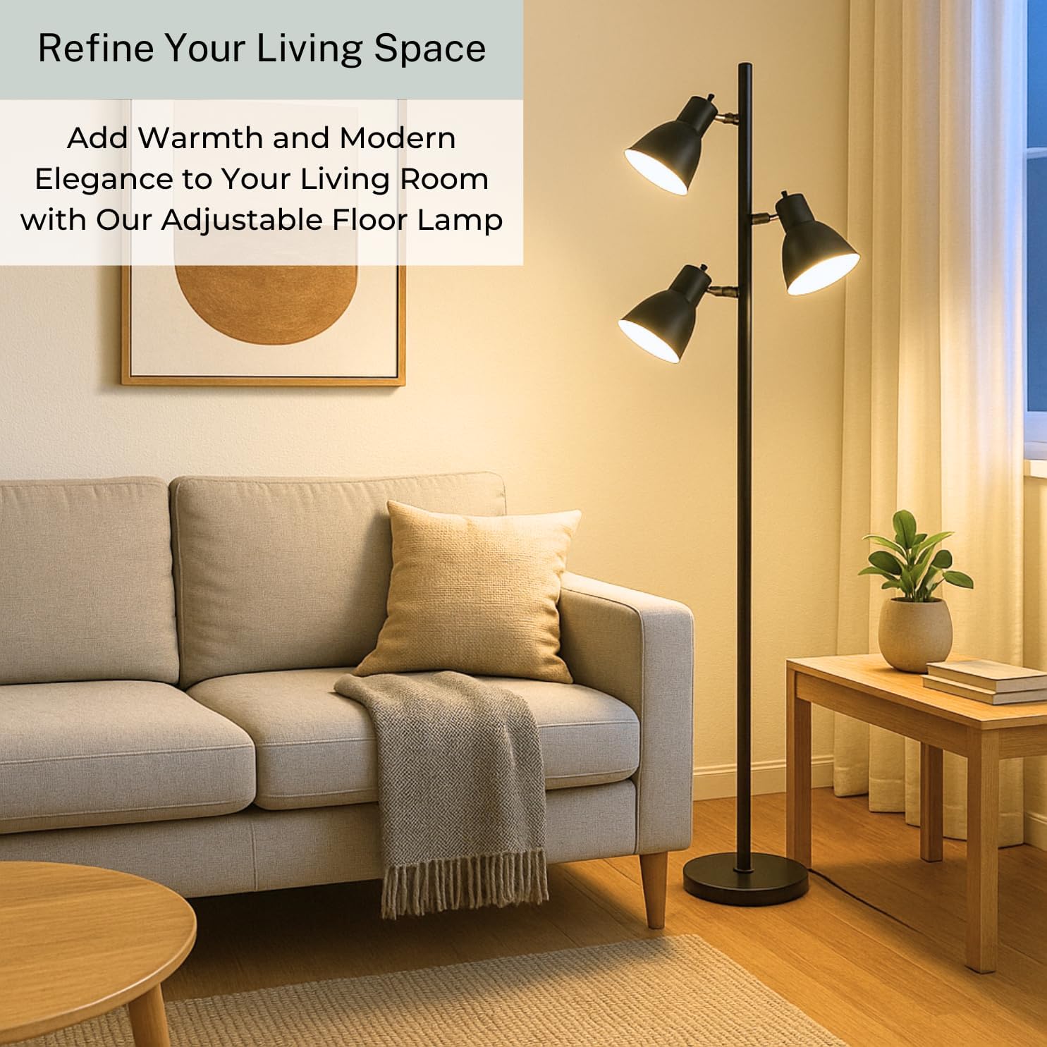 | Additional Features | 3 Adjustable Light Heads, Multi-Color Lighting Option, Sleek Black Metal Pole, LED Compatible (E12), Sturdy and Stable Base, Energy-Efficient Lighting, Modern Floor Lamp Design, Ideal for Reading and Task Lighting, Customizable Light Direction, Easy Assembly |