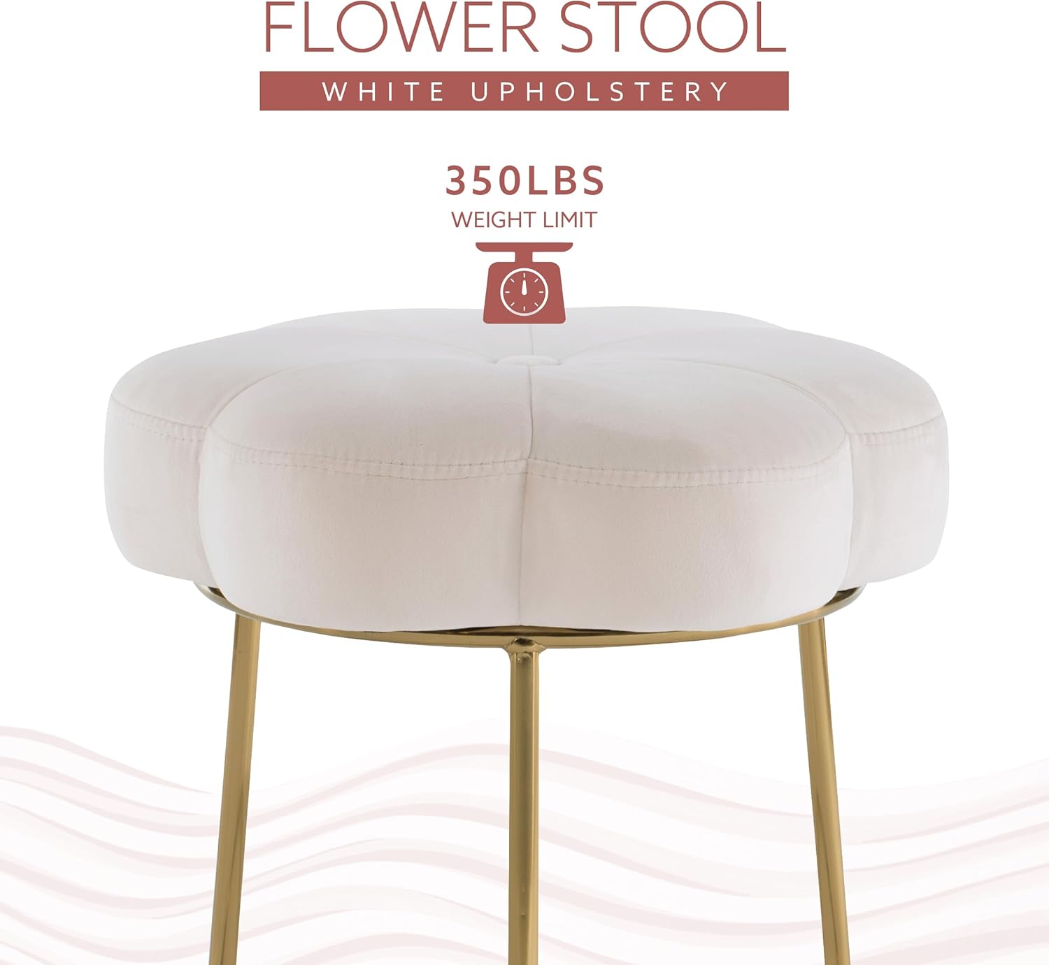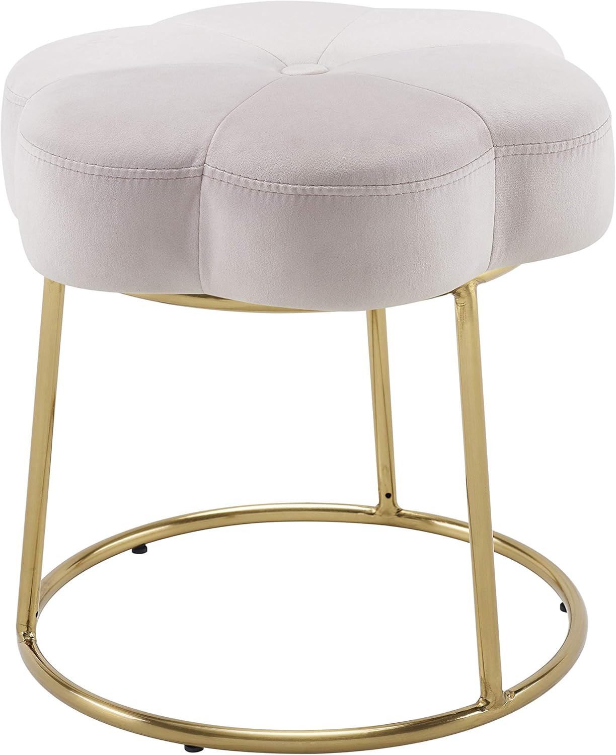 Turn everyday routines into little luxuries with this flower vanity stool. The plush, petal-shaped cushion is draped in sumptuous white velvet for a soft touch and elegant gleam, while the open steel base is finished in a polished gold tone for ensured stability with a touch of glam. Whether tucked beneath a vanity, pulled up as an accent perch, or placed in a dressing nook, this stool strikes the perfect balance between whimsy and sophistication. Also available in multiple colors and textures to suit any space.