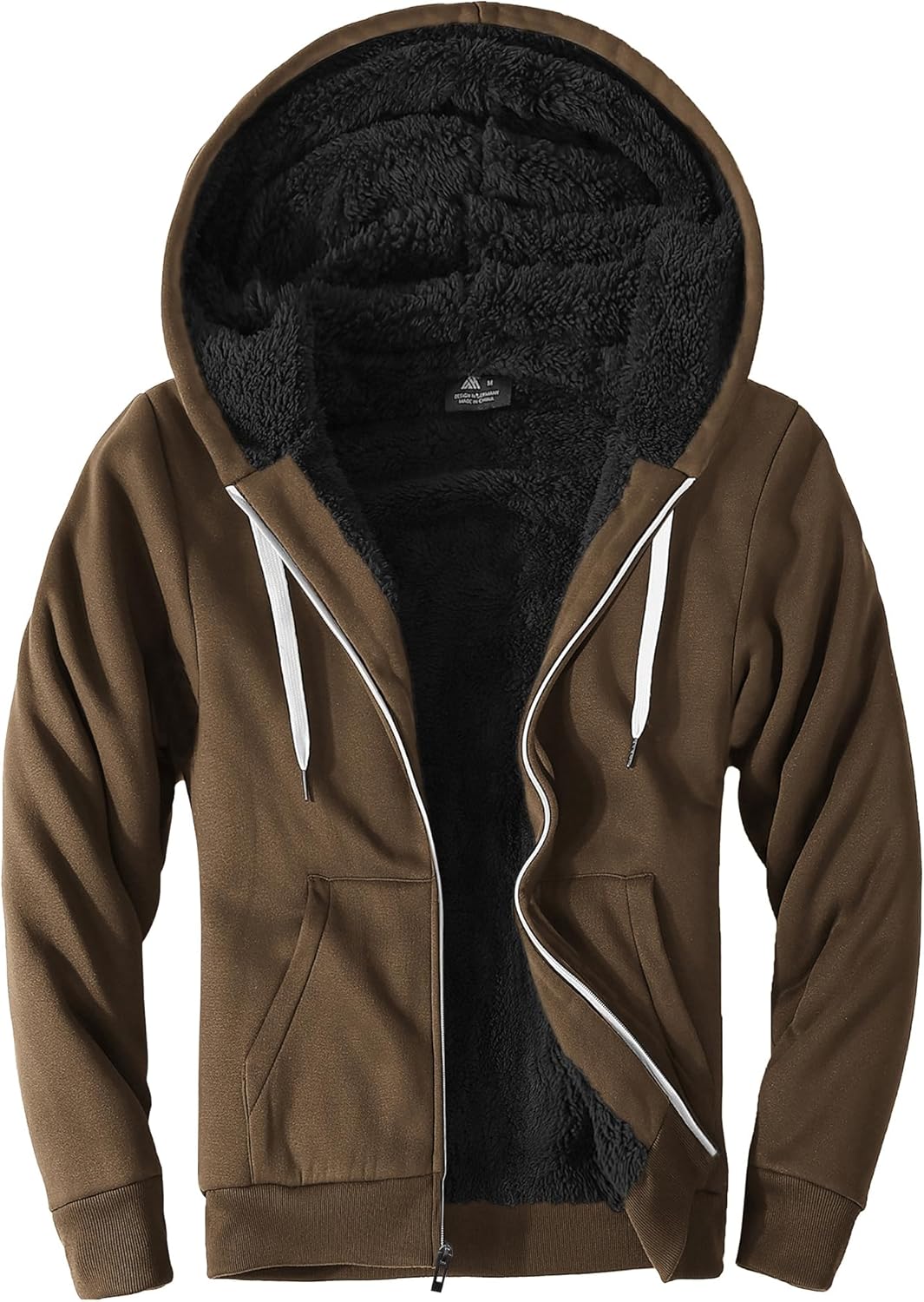Little Beauty Fleece Hoodies for Men Winter Thick Jackets Sherpa Lined Zip Up Sweatshirt With Kanga Pocket