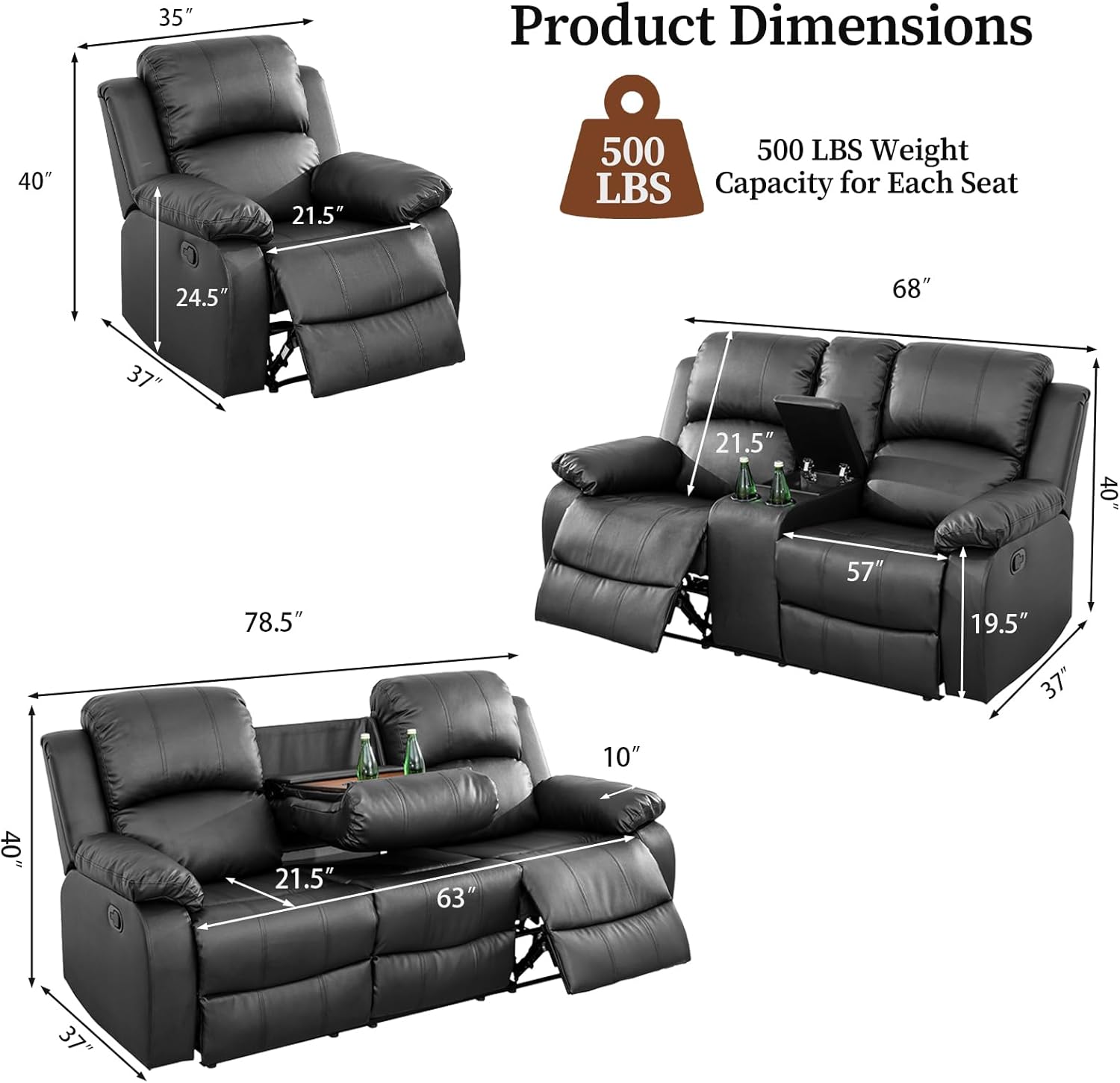 | Size | Sofa, Loveseat & Chair |