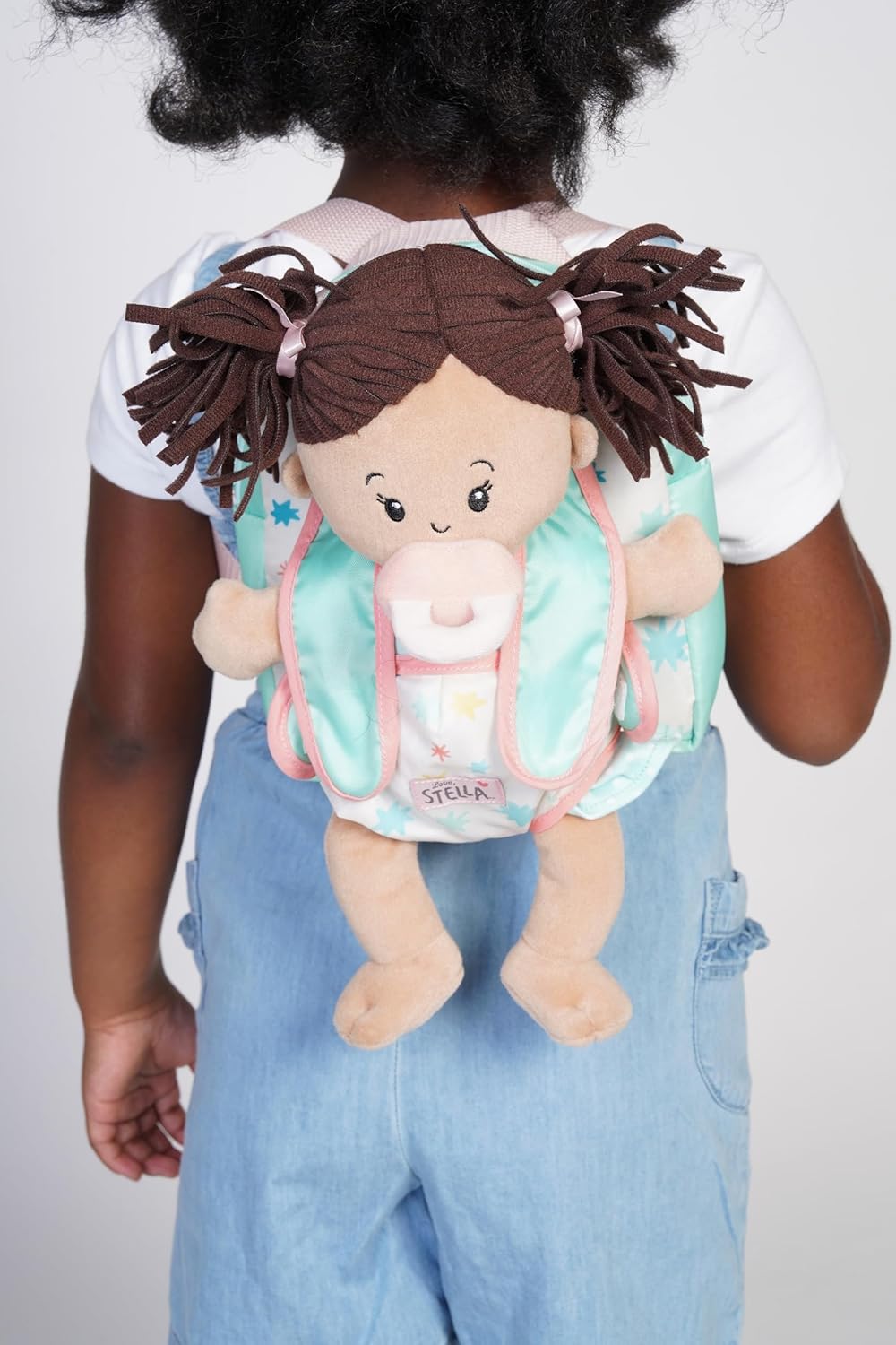 Product Description An excellent playset for carrying Love, Stella wherever they may go! Secured by simple hook-and-loop closures, all Love, Stella dolls fit comfortably inside the carrier. This soft doll accessory features a reinforced padded backpack compartment with a zipper closure - perfect for storing Love, Stella clothing and accessories. Comes equipped with adjustable nylon straps and a fabric loop handle. Doll pouch on outside of backpack fits all Love, Stella dolls. Research and studies by child development experts find that doll play allows children the ability to develop and practice key social and emotional skills including nurturing, empathy, and friendship. Some researchers term this as EQ (Emotional Intelligence) which is a key component to a child's whole development; doll sold separately. From the Manufacturer Baby Stella's baby carrier by Manhattan Toy, fits both doll and your toddler comfortably. This great toy helps tots practice fine motor and nurturing skills. The reinforced padded case with zipper enclosure holds most of her accessories. Comes equipped with adjustable nylon straps and handle.