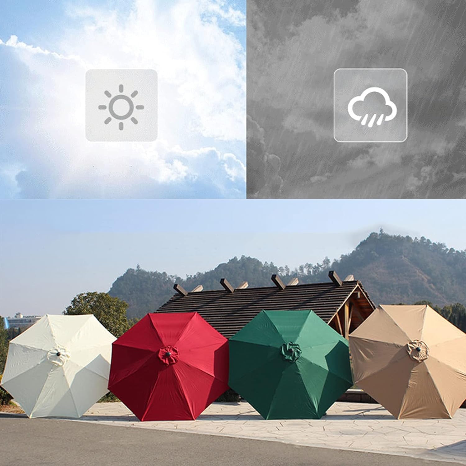 Patio Umbrella Outdoor Table Umbrella with Crank 8 Ribs for Patio Backyard Lawn Garden Outdoor Activities, Portable Sun Shade Umbrella> Product Description:> Name: Iron Elbow Central Column Umbrella> Umbrella fabric: 200g/ PA polyester fabric coating> Frame material: iron frame with antis-rust treatment> Function: sunshade, waterproof, windproof> Opening methode: hand crank bearing open> Color: red, green, white, gray> Umbrella: 8 bones> Weight: 6KG> Size: 270cm*245cm (106inch*96inch)> parasol is waterproof, easy to clean and maintain.> Elbow parasol without base> Each product is shot in real scene, re may be some visual deviation due to light and or reasons.> umbrella of sunshade is made of polyester, and rainproof ability is limited to light rain.{/p}