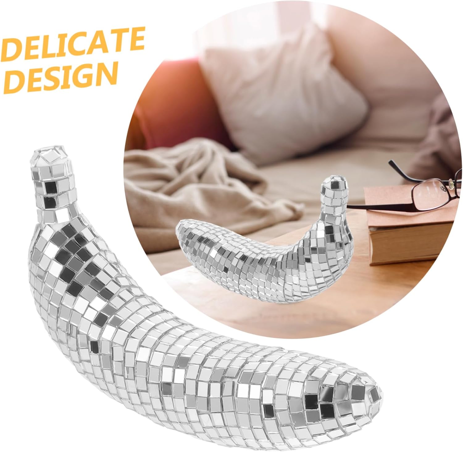 Package Include 4 x banana artware Characteristics -Color:Silver Decorative Banana Adornment -Size:16.50X7.00X4.50cm/6.48X2.75X1.77in Disco Banana Model -Material:Foam, glass Banana Ornament -Crafted with material to create delicate effect. Adorable disco fruit decor adds a touch of cuteness disco ornament. -This disco banana figurine is the mom for Mother's Day, Christmas, Valentine's Day, anniversary Banana Figurine For Table. -A versatile banana ornament suitable for enhancing the ambiance of any home, office, or as Disco Party Ornament. -This banana ornament can widely applied in home, restaurant, catering hall, food shop, fruits shop Disco Banana Statue. -Unique and design of this banana ornament is very decorative for your home desktop disco party favor.Goods DescriptionDecorative Banana Adornment Crafted from quality material, it boasts a high gloss finish that effortlessly complements any home decor style.Banana Decorations The unique mirror reflective design creates a mesmerizing visual effect that instantly catches the eye.disco fruit model Add a touch of retro disco style to your home with the Mirror Reflective Vintage Disco Banana Ornament