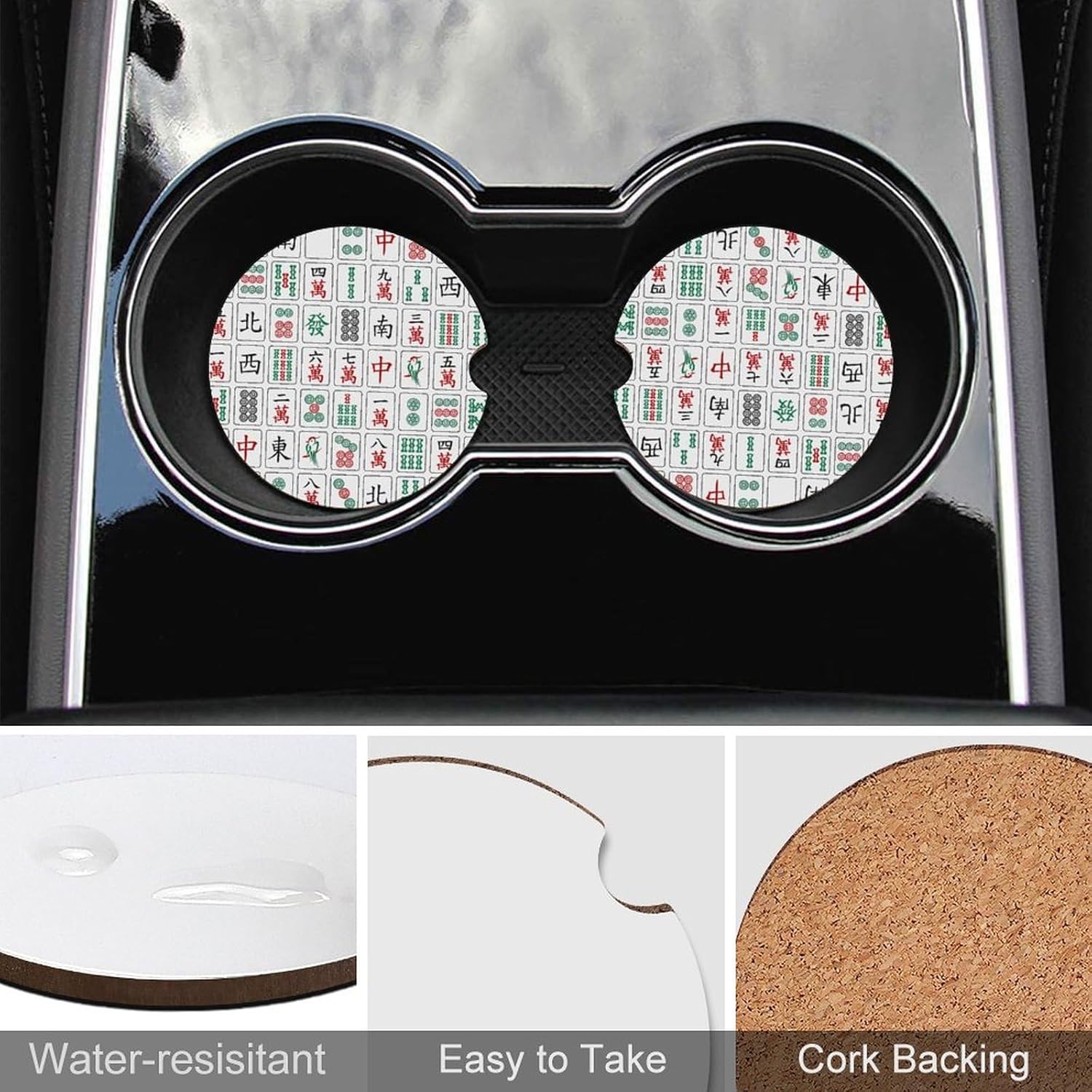 car coasters,coasters set of 6,coasters set of 4,car cup coasters,cup holder coasters for car Round Wood Car Cup Holder Coaster 2.56 Inches Cute Absorbent for Drinks Coaster Auto Interior Decorative Accessories with Funny Pattern Design