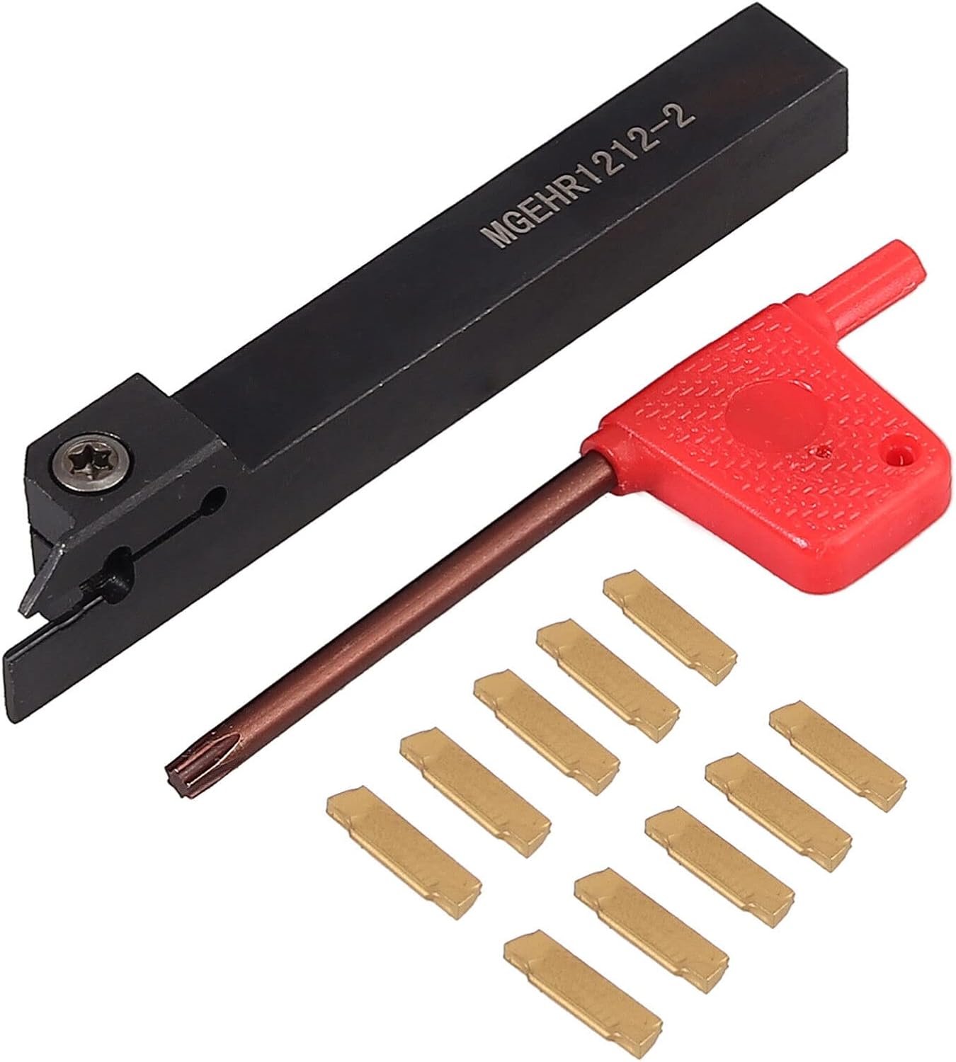 Maizoon CNC Lathe Turning Tool Holder MGEHR1212-2 12 x 100mm Boring Bar + 10pcs MGMN200-G Carbide InsertSpecifications:MGEHR1212-2 Cut-Off Tool HolderMaterial: steelModel: MGEHR1212-2Hardness: more than 40Size: 12x12x120mmGrooving Width: 2mm MGMN200-G Insert BladeModel: MGMN200Color: GoldInsert width: 2mmLength: 15mmQuantity: 10pcs Package included:1 * MGEHR1212-2 Cut-Off Tool Holder1 * Hex Wrench10 * MGMN200-G Carbide Insert Blade