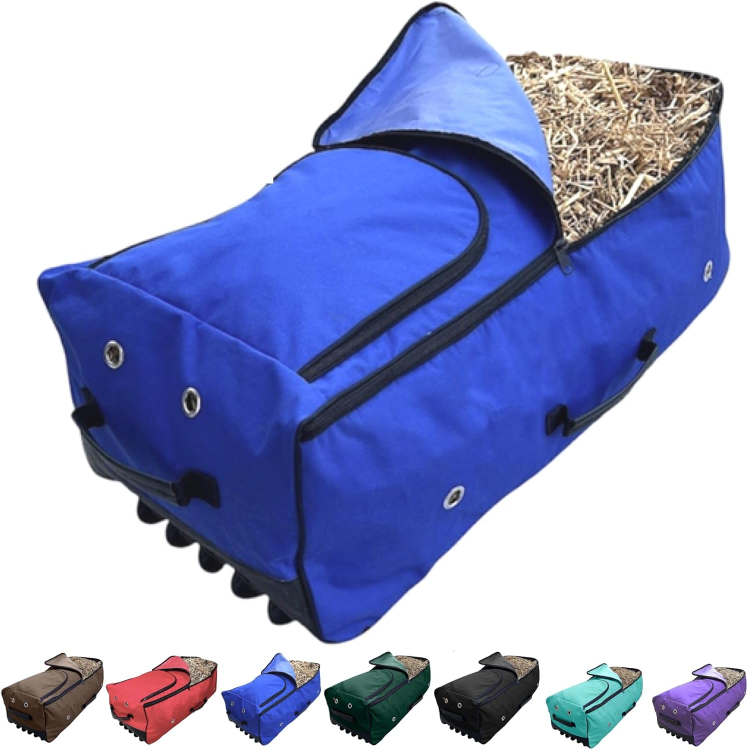 Keep your horse's hay clean, dry, and easily transportable with this spacious nylon hay bale bag. Measuring a generous 44 x 22 x 16 inches, this rolling storage solution is perfect for storing and moving hay with minimal effort. The durable nylon construction helps protect hay from dust and debris while making it easy to transport from storage to feeding areas. Available in multiple colors to suit your preferences, this practical bag features wheels for smooth rolling across stable floors and barn aisles. The thoughtful design allows for convenient hay storage and handling, making daily feeding routines more efficient. This sturdy hay bale bag is an essential tool for any horse owner looking to maintain an organized and tidy stable environment.