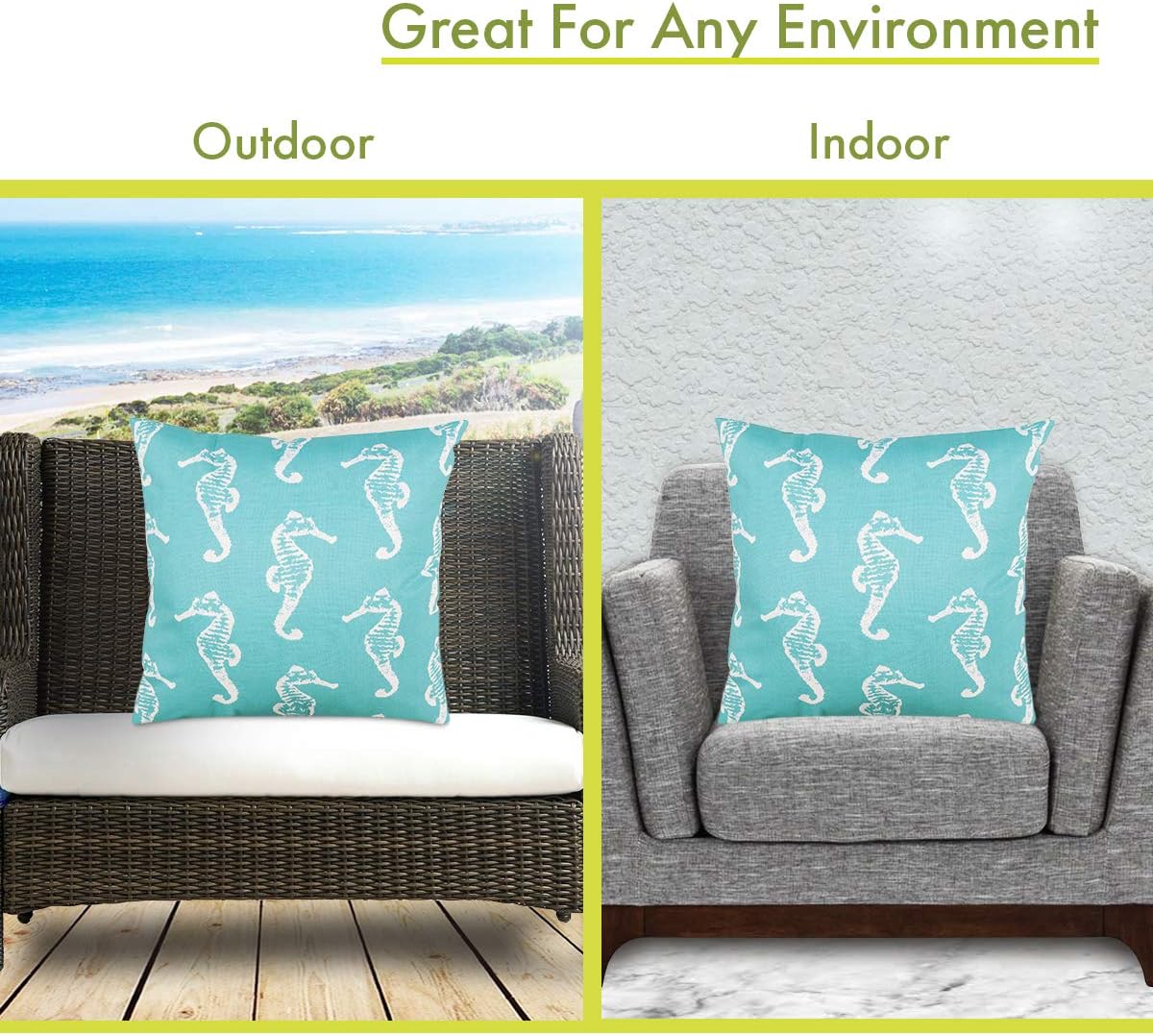 Add a splash of color and a little texture to any environment with these plush pillows by majestic home goods. The majestic home goods teal sea horse extra large pillow will instantly lend a comfortable look to your living room, family room or patio. Whether you are using them as decor throw pillows or simply for support, majestic home goods extra large pillows are the perfect addition to your home. These throw pillows are woven from outdoor treated polyester with over 1000 hours of UV protection and filled with super loft recycled polyester fiber fill, for a comfortable but durable look. Spot clean only.
