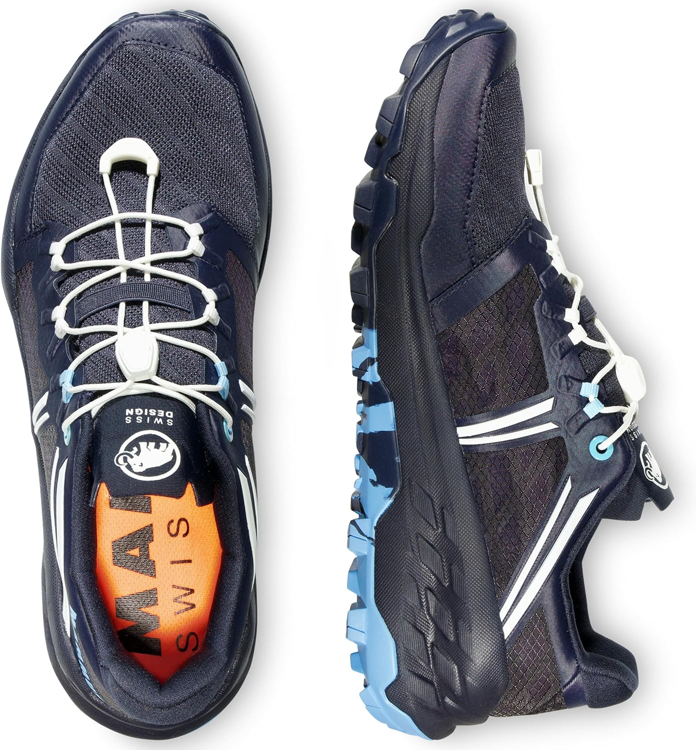 A popular Sertig trail running shoe with a focus on comfort and speed. Lightweight and flexible Mammut Swiss Design outsole delivers superior responsiveness and dependable grip. Mesh forefoot allows ventilation to keep feet comfortable. The elastic EVA midsole and foam lining at the ankle provide extra cushioning, making it an ideal partner for mid-range runs.