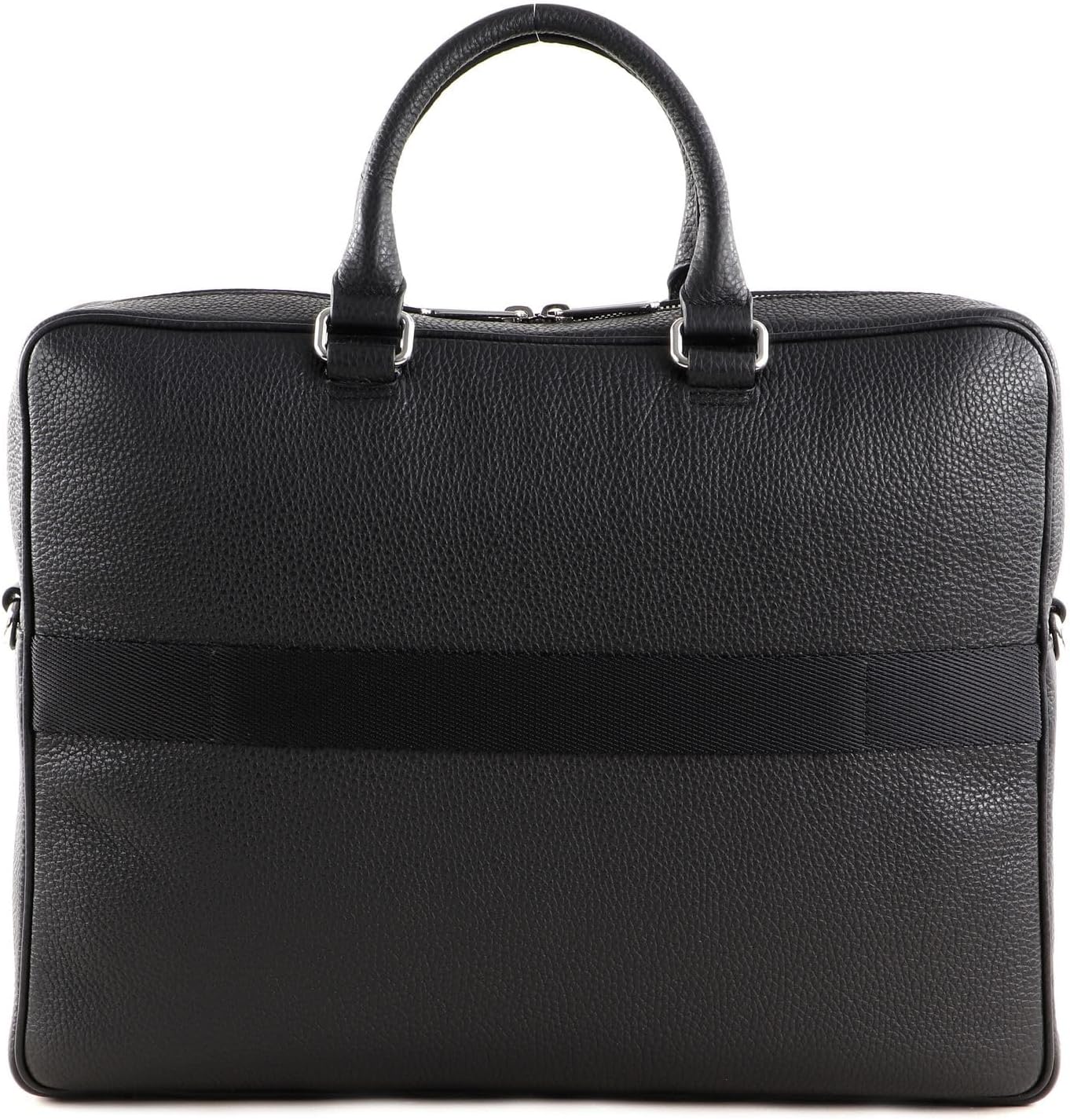 Business briefcase in textured leather of Italian origin with simple lines with double handle and adjustable and removable shoulder strap, organized internally with 15 inch holder.