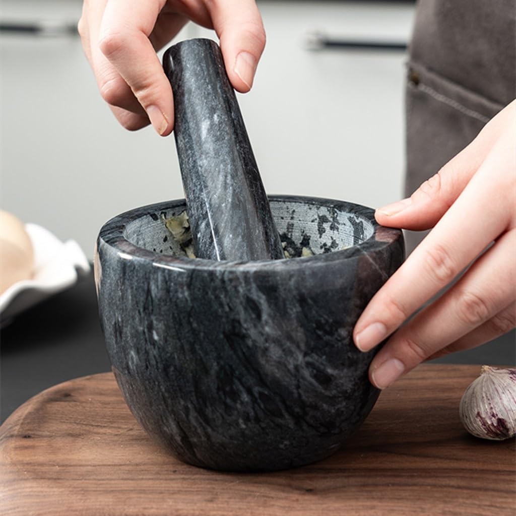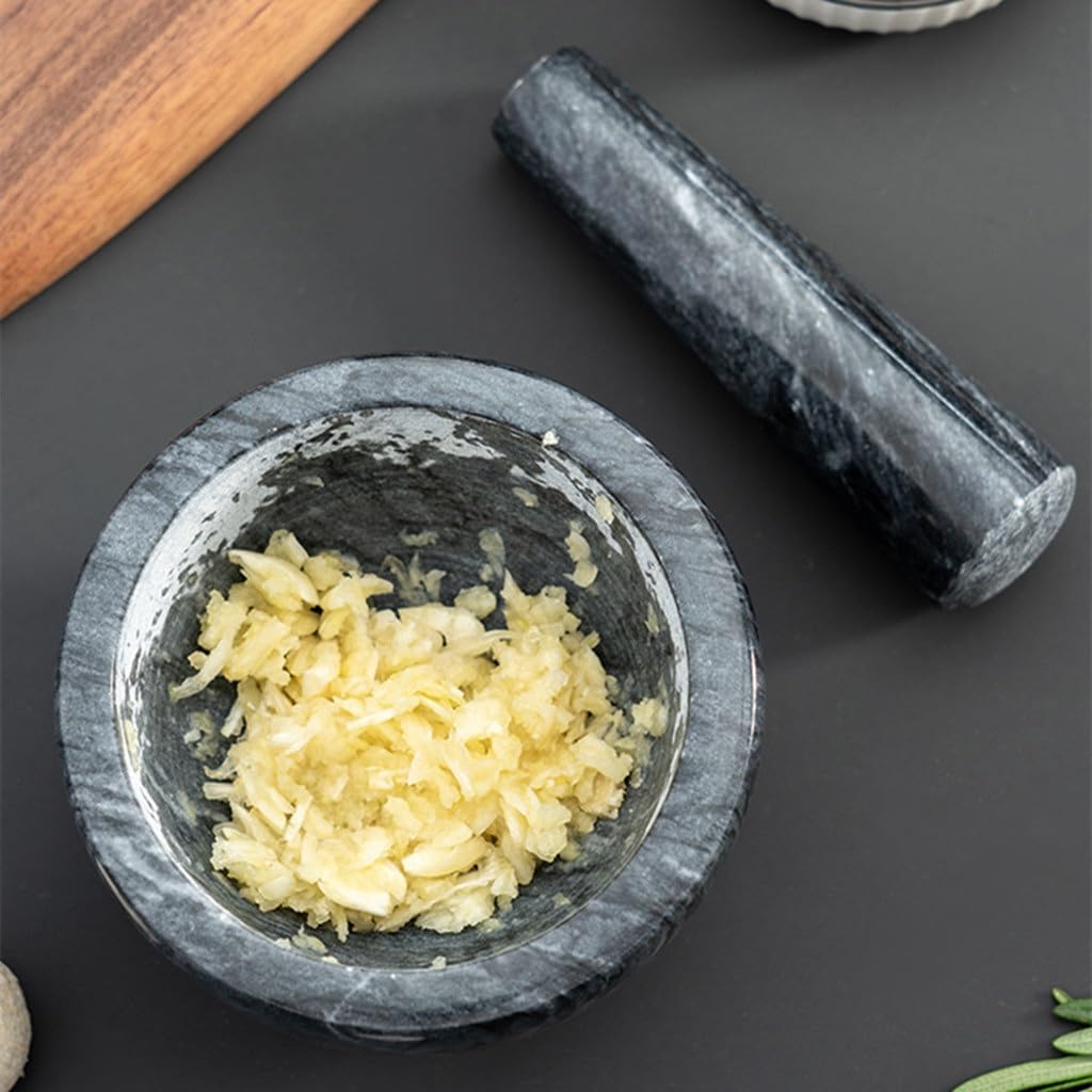 Professional kitchen garlic buckle pot bottom seat bowl mortar and pestle setUse a portable design and easy and safe useSolid garlic percussion stick, strong and , comfortable gripDeepened, thickened barrel body, which is comfortably handled and easily groundEasy to clean and does not cause the grinder to retain the original spice flavorMaterial: StoneDimensions: 9.8*8.8 cmPackaging: 1 garlic processor