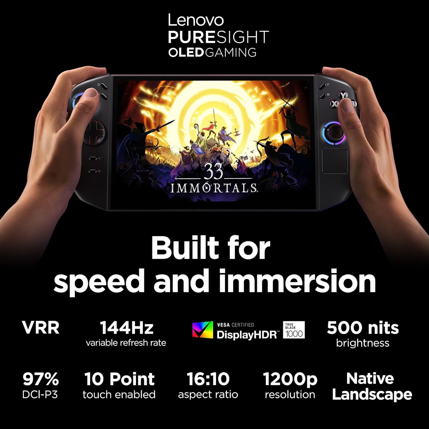 Processor AMD Ryzen Z2 Processor (8-Core 3.3GHz)Memory 32GB LPDDR5x 8000MHz RAMDrives: 2TB M.2 TLC G4 Solid State DriveOperating System: Windows 11 Pro Upgrade (64-bit)Communications: Wi-Fi 6E & Bluetooth 5.3Integrated Dual Array MicrophoneGraphics & Video: 8.8" PureSight OLED WUXGA OLED 500 Nits 144hz Touchscreen with VRRIntegrated AMD Radeon GraphicsAudio: 2 X 2W Integreated SpeakersFingerprint ReaderPorts & Slots:2 x USB 4.0 Type C (40Gbps, Power Delivery 3.0 and DisplayPort™ 2.1)1 x Micro SD Card Reader1 x Combo Headphone/Mic JackPower Supply: 65W Type-C Power Adapter 74 WHr, 4-Cell BatteryDimensions: 5.38" x 11.64" x 1.67" Approximate Weight: 2.02 lbsWarranty 1 year CPS warranty