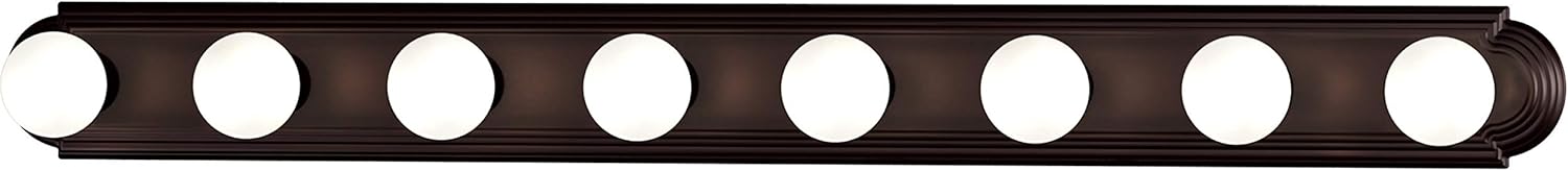 Introduce an element of style and antiquity in your bathroom decor with Maxim Essentials 8-Light Bath Vanity. Offering good ambient light in your bath area, this decorative vanity makes use of eight 100 watts incandescent light bulbs, which can be dimmed using a standard incandescent dimmer. Affordable and stylish, the lighting accessory features heavy-duty iron body with oil rubbed bronze finish. The bathroom light fixture needs just 120 volts power supply. The Essentials wall mount 8 light bath vanity is damp rated and UL listed for hardwire connection in moist regions.