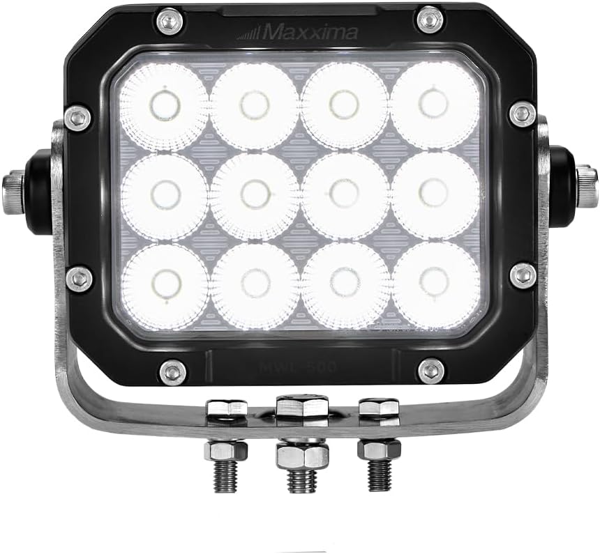 The MWL-500 is a high-powered LED work light from the MaxxBright family which is renowned for very high output lights and top-tier performance in demanding environments. Emitting an impressive 8,500 Lumens of 6000K bright white light in a wide 55° flood beam pattern, this robust light is ideal for work zones and scene illumination. Crafted with a durable white cast aluminum housing, it comes with an integrated DT04 Deutsch-style connector, complete with the corresponding mating pigtail for seamless connectivity. Its heavy-duty bail mount bracket, featuring 3 studs, ensures a secure installation on your vehicle while allowing for precise angle adjustments. Engineered with a resilient polycarbonate lens, the MWL-500 comes with a reassuring 5-year warranty, offering peace of mind for long-term performance. Experience unparalleled brightness and reliability with the MWL-500 LED work light.