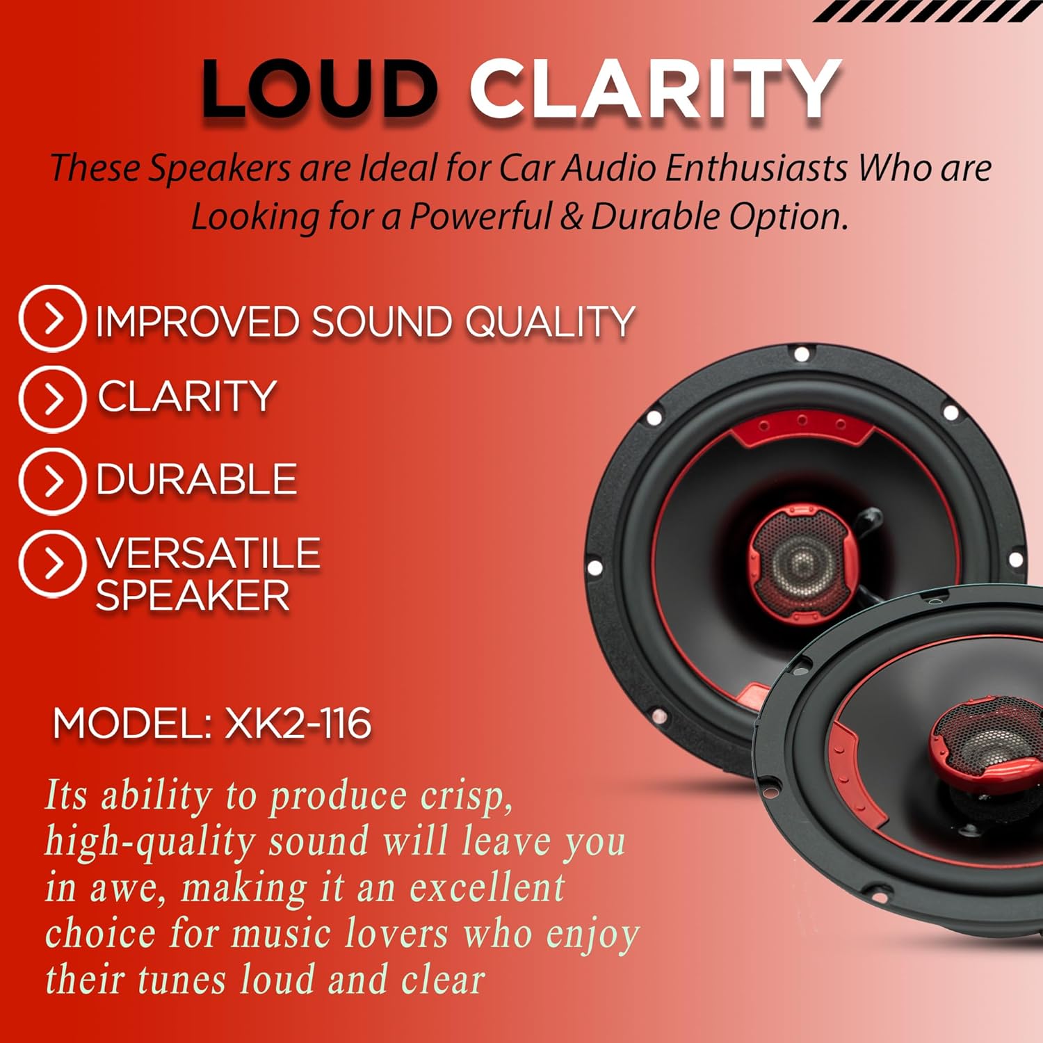 The MB Quart XK2-116 6.5-Inch Coaxial 2-Way Speaker System is designed to deliver exceptional audio performance in your vehicle. With a power handling capacity of 120 watts RMS and 240 watts peak power per pair, these speakers produce robust and dynamic sound that will enhance your driving experience. The 88dB sensitivity and wide frequency response of 55Hz-22kHz ensure that every note and detail in your music is reproduced with precision and clarity. Constructed with high-quality materials, the MB Quart XK2-116 speakers are built for durability and long-lasting performance. The compact 6.5-inch size, combined with a cut-out diameter of 5.59 inches and a depth of 2.13 inches from the flange, makes them easy to install in a variety of vehicles. This versatile compatibility allows you to upgrade your car's audio system effortlessly, providing an immediate improvement in sound quality. Whether you enjoy listening to music, podcasts, or audiobooks while driving, the MB Quart XK2-116 6.5-Inch Coaxial 2-Way Speaker System will elevate your in-car audio experience. The speakers' superior design and performance ensure that you get the best possible sound quality, making your time on the road more enjoyable and entertaining. Invest in these speakers for a significant upgrade to your vehicle's audio system.