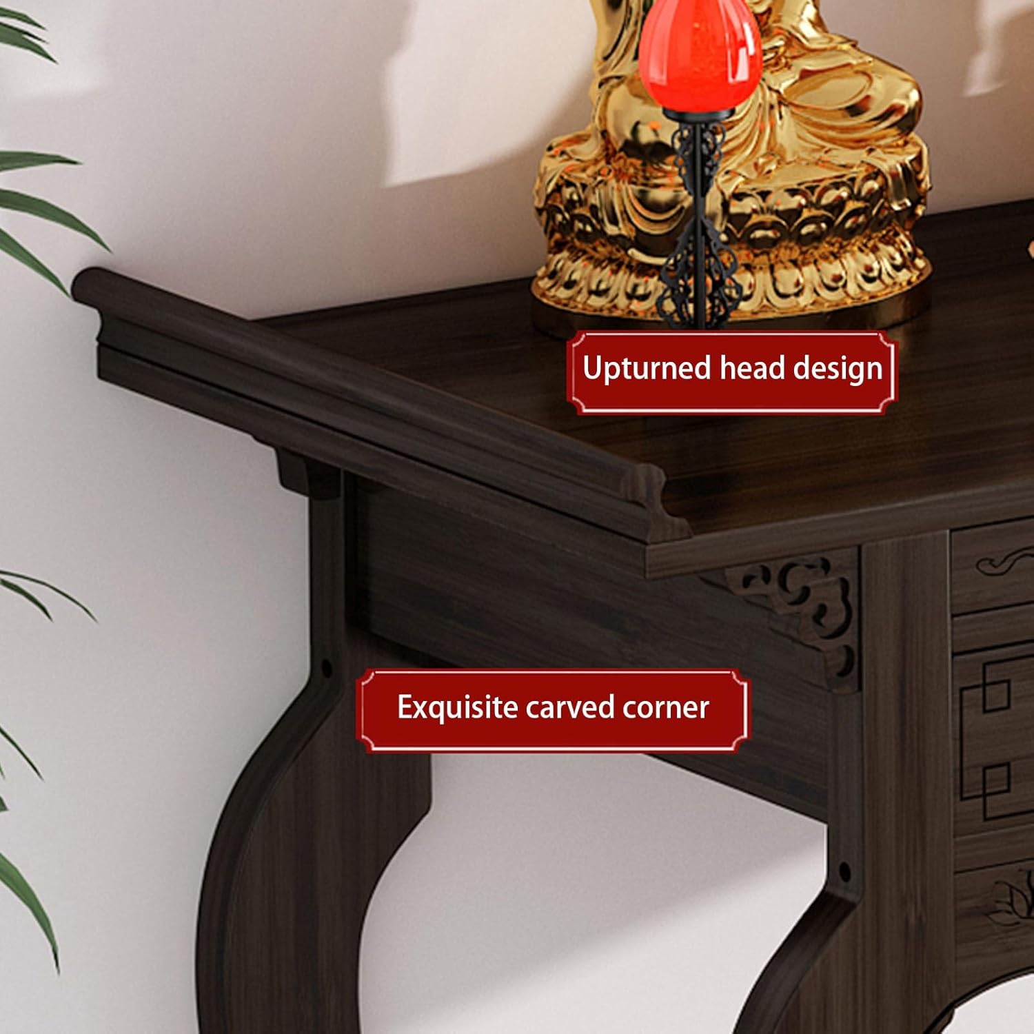 This YQMHEZ console table is a practical and stylish choice. It has drawer with an elegant handle for storing small items and the bottom shelf for daily essentials and the top for decor. The elevated legs protect against moisture, while the smooth, polished surface and edge bar add to its charm and functionality.Name: Buddha Altar Table/Prayer Altar/Stand Puja Meditation Prayer Table/Bamboo Prayer Meditation TableMaterial: BambooColor: WalnutDimensions: L66xW33xH100cm, L66xW40xH100cm, L80xW33xH100cm, L80xW40xH100cm, L100xW33xH100cm, L100xW40xH100cm, L120xW33xH100cm, L120xW40xH100cm, L140xW33xH100cm L140xW40xH100cmUses: Can be used for prayer, burning incense, divination, offerings, meditation, sacrifices, ancestral halls, temples, worship, and ritualsPackage Includes:1 * Altar cabinetNotes:Please confirm dimensions prior to purchase, as there may be a slight error of 0-3 cm due to manual measurement.Images are for illustrative purposes; additional items shown are not included.Colors may vary slightly due to monitor differences.