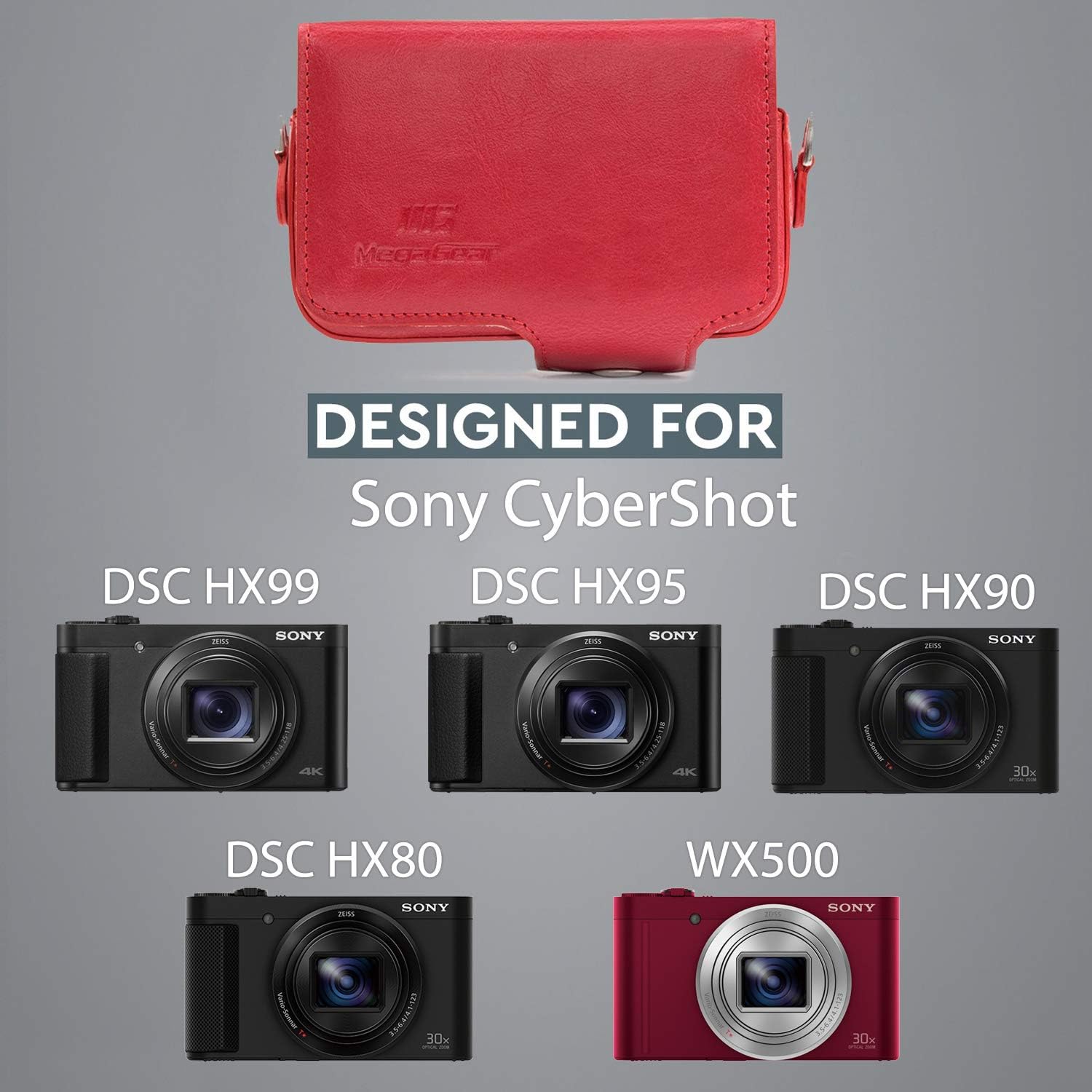 | Item Type Name | MegaGear Sony Cyber-shot DSC-HX80, DSC-HX90V, DSC-WX500 Leather Camera Case with Strap - Red - MG1208 |