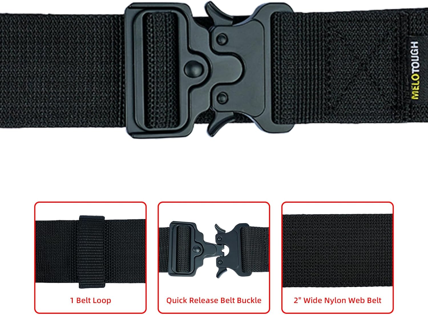 MELOTOUGH 2" Nylon Web Work Tool Belt for Men with Heavy Duty Quick Release Rugged Metal Buckle outdoor men's belt Tool Belts (Black) + MELOTOUGH Pocket Tool Pouch Tool Belt Pouches with Belt Clip Utility Mini Tool Organizer Pouch for Electrician,Carpenter,Construction,Technician