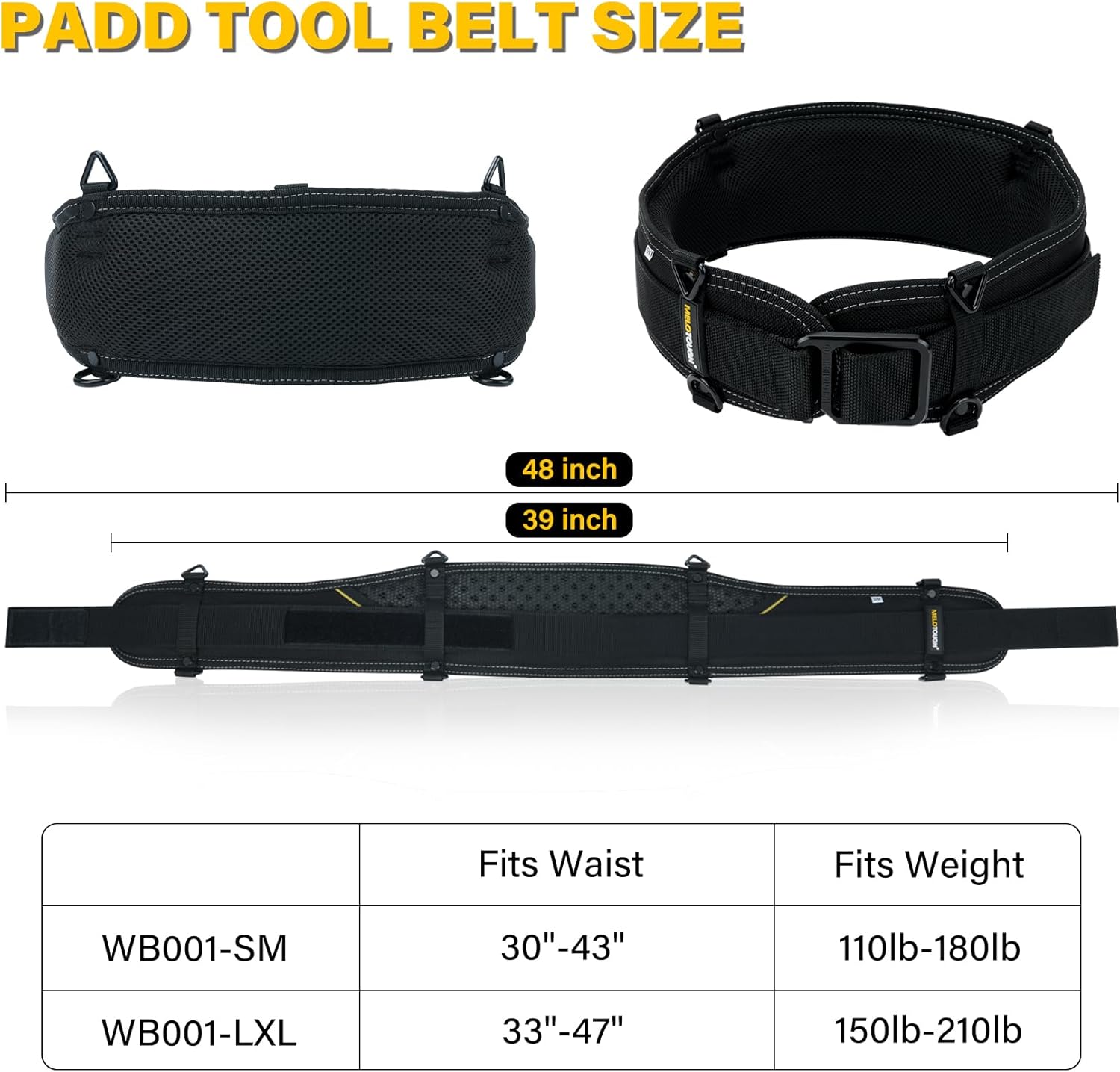MELOTOUGH Hammer Holder, Hammer Holder for Belt,Hammer Loop,Hammer Holster,Hammer Belt Holder,Black;MELOTOUGH Padded Tool Belt,Electrician Tool Belt,Work Belt for Men,Quick Release,Thick Confortable Foam Padding,Military-Inspired Dual-Layer Construction‌,More Safe,Adjustable Waist 30''-43''(SM)‌