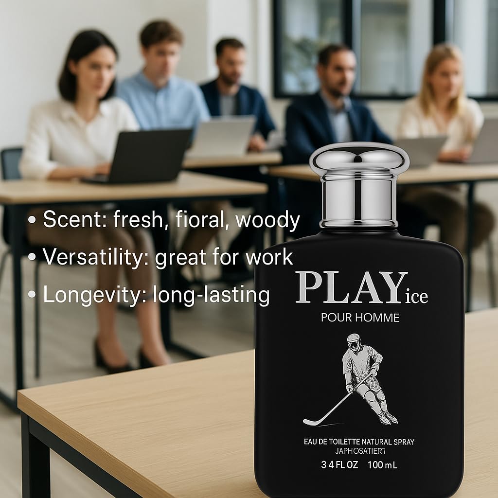 Introducing PLAY ice Pour Homme, a sophisticated men's fragrance that embodies the cool intensity of ice hockey. This striking Cologne comes in an elegant 3.4 fl oz black glass bottle adorned with a distinctive hockey player silhouette. The sleek design captures the essence of strength and athleticism, while the silver accents add a touch of refined luxury. The natural spray delivers the perfect amount of fragrance with each application. The sophisticated packaging makes it an excellent gift choice for the modern, active man who appreciates both style and sport. The convenient 100ml size is ideal for daily wear or travel. The bold black bottle not only protects the fragrance from light exposure but also serves as a statement piece on any dresser or bathroom counter. Whether heading to the office or out for evening plans, this distinctive scent helps you make a memorable impression.