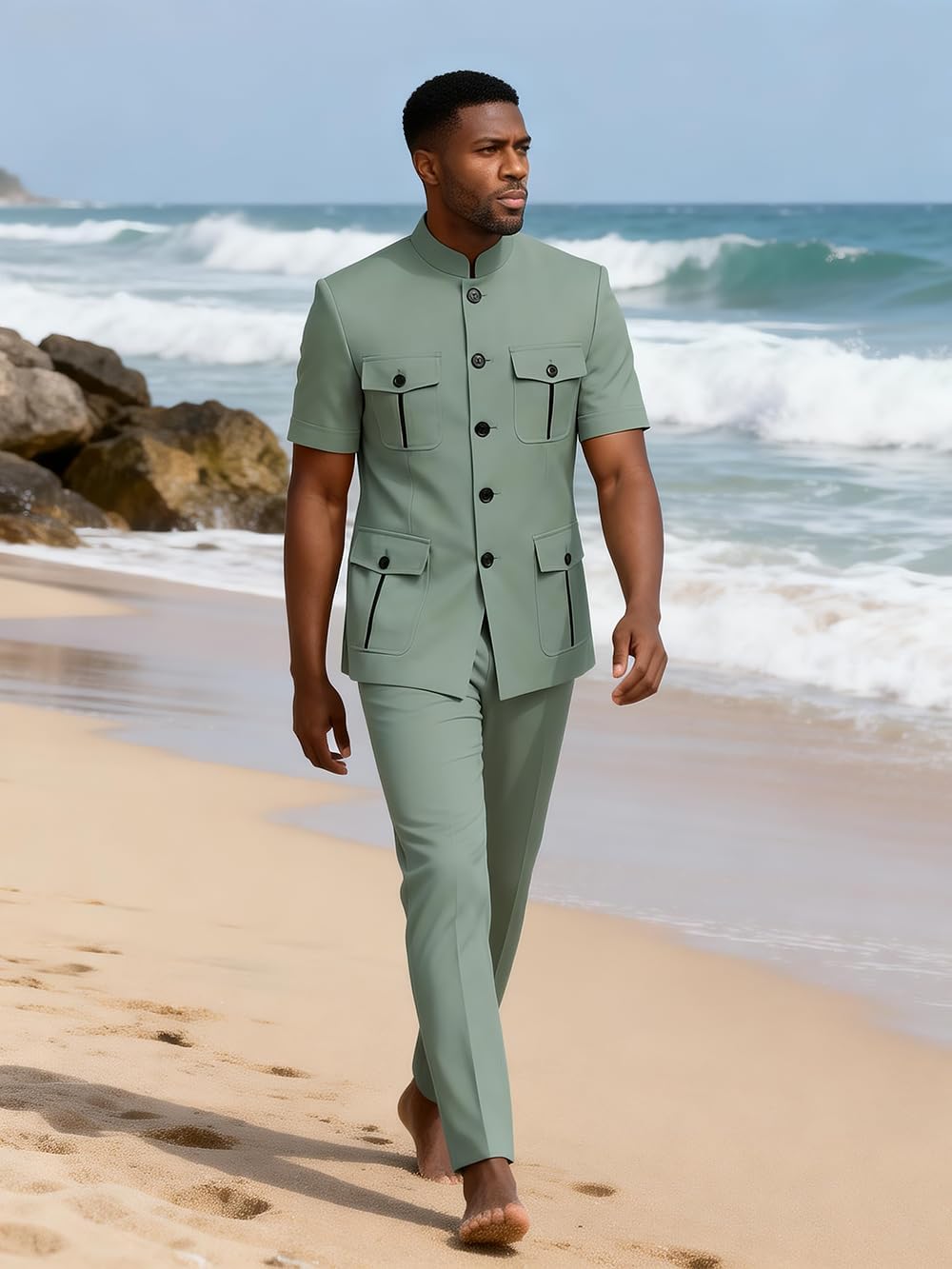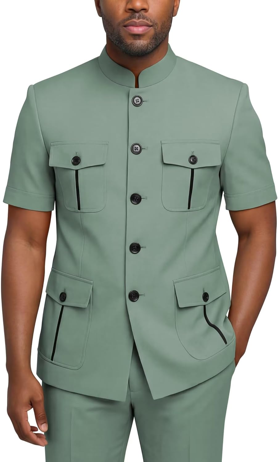 Product Name: Mens Safari Suit 2 Piece Short Sleeve Suits for Men Regular Fit Stand Collar Suit African ClothesMens 2 Piece Suit Including: 1 Jacket + 1 Pants. Please Check the Size Information Carefully Before you Place the Order. Recommended Hand Wash or Dry Cleaning. Please Don't Expose it to the Hot Sun in a Long Time. No Matter What Style of Man you are,Put on this Suit,you Will Become Noble and Persevering. Elegant Design,Suitable for Homecoming,Wedding,Daily Life,Business Meeting,Date,Gathering,Banquet,any Fashion Forward Parties,any Grandly Holiday and ect. It is Manual Measurement,Please Allow 1-3cm Error Exist. Notic Tip: The Colors Might Look Slightly Different in Person Due to Camera Quality and Monitor Settings. Thanks for your Understand!