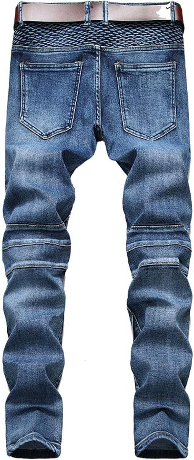 Men's Streetwear Patchwork Pleated Stretch Ripped Biker Jeans Denim Pants